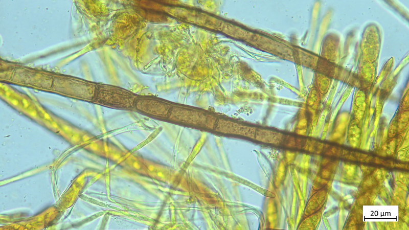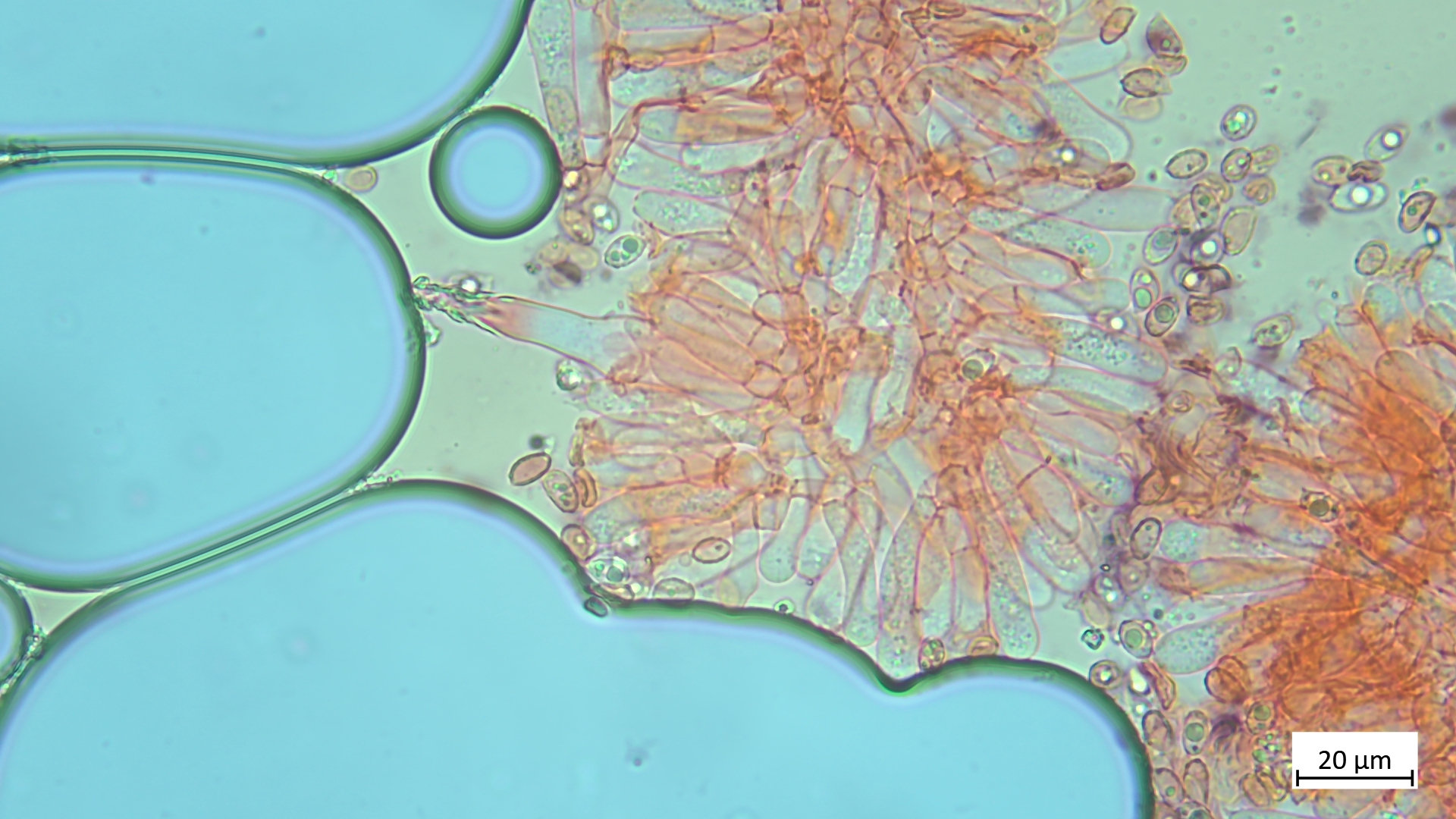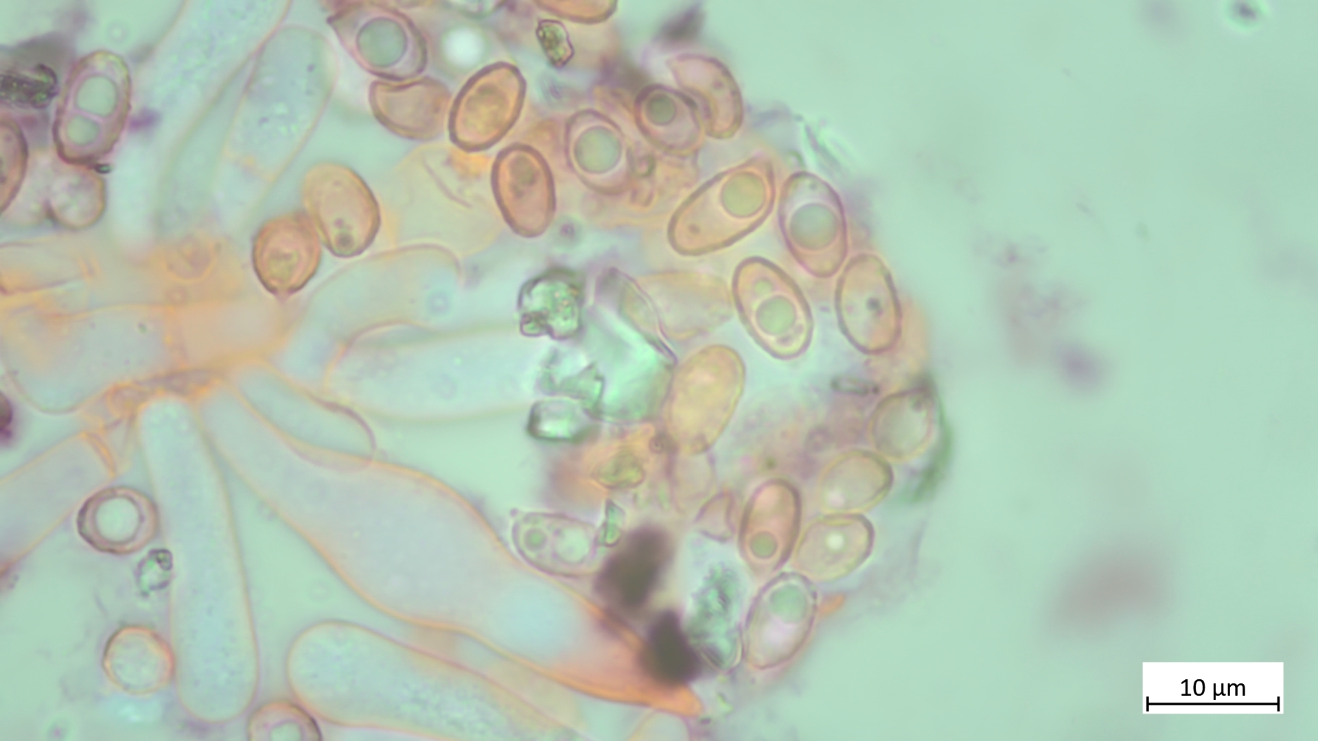 Bei einer Melanoleuca hatten wir überlegt, ob es brevipes sein könnte wegen des Habitus mit kurzem Stiel. Die weiße Behaarung am Stiel ist aber wohl schon kein schlechter Hinweis auf M. humilis. Und in der Mikroskopie fanden sich dann auch fusiforme Zystiden, was humilis bestätigt und brevipes ausschließt (der hat Brennhaarzystiden).