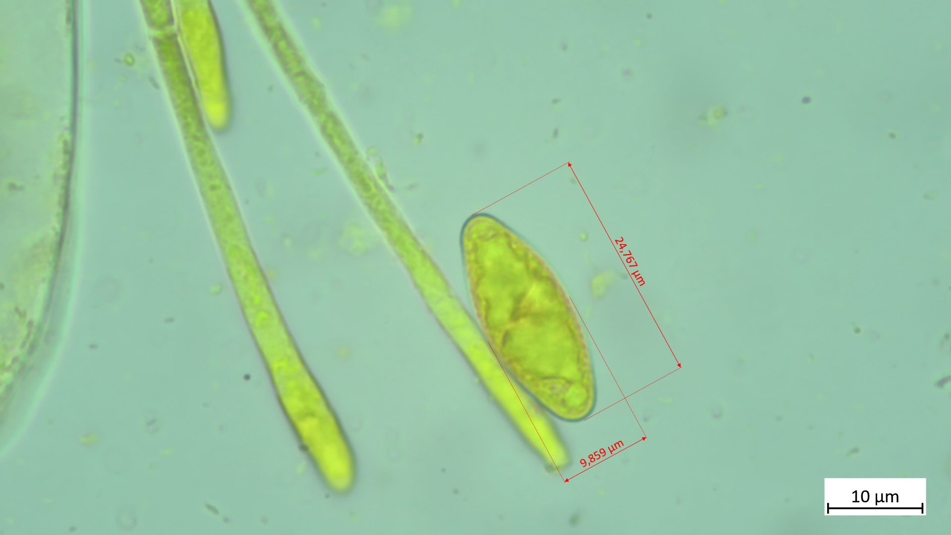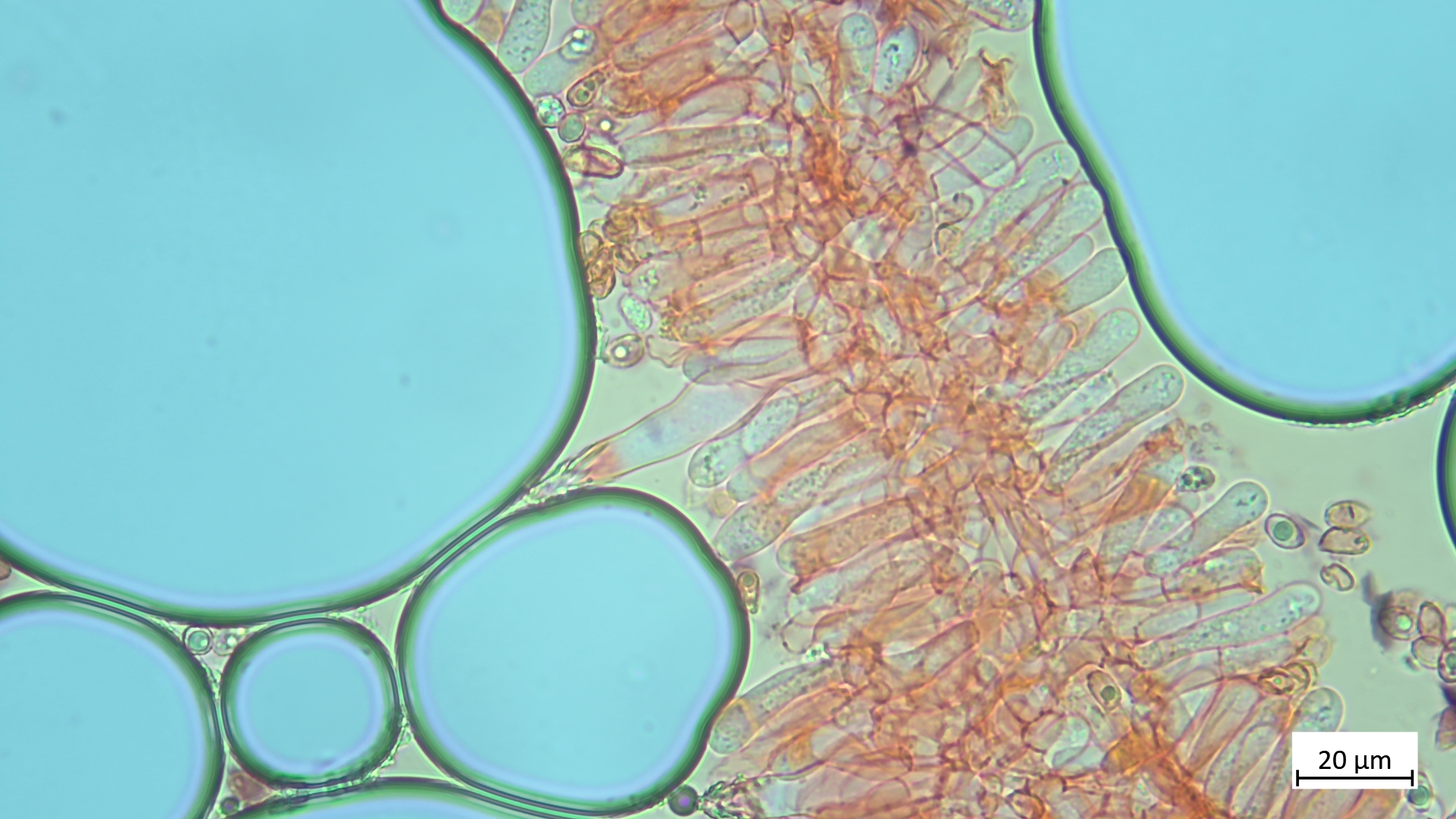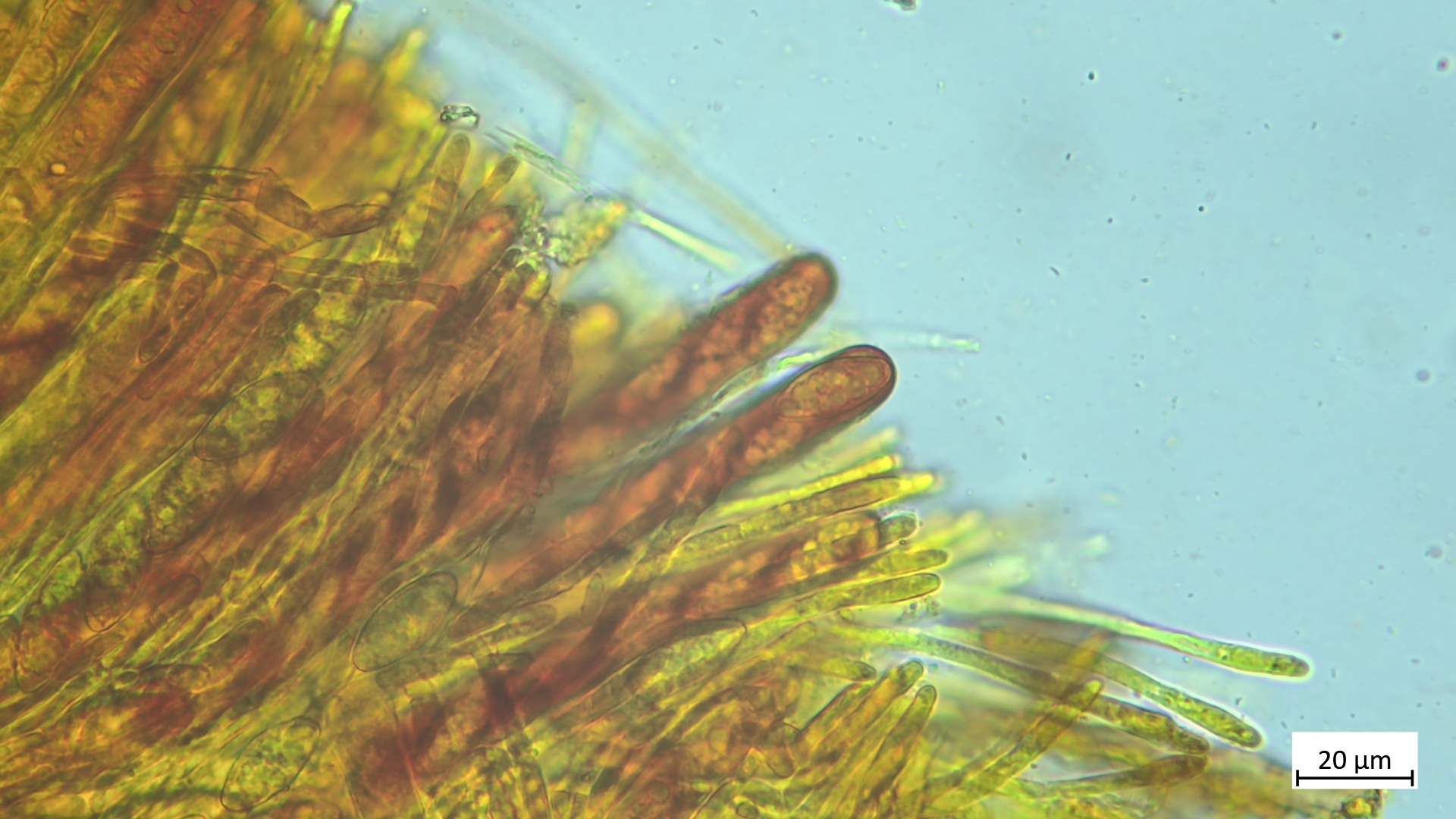 Haare, Asci und Paraphysen in Lugol:
