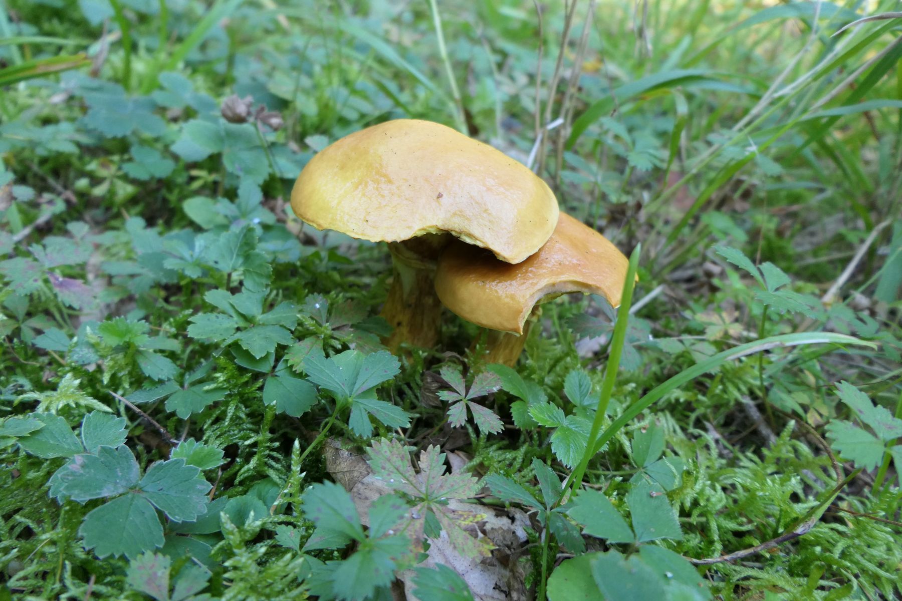 02 Gomphidius maculatus - den gefleckten Schmierling bei 03 Suillelus grevillei - dem Gorldröhrling (die hatte ich allerdings erst abends an einer Waldkante unter Lärchen):