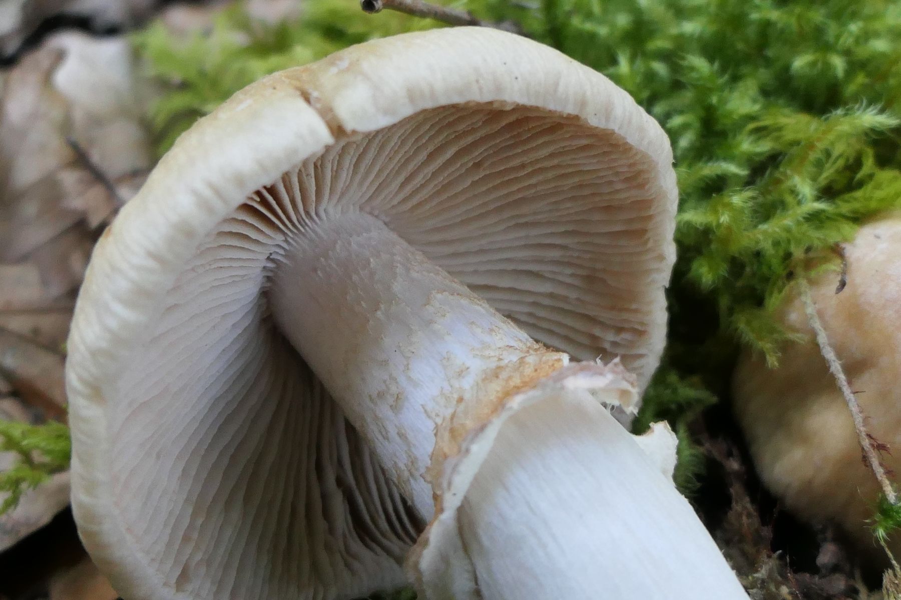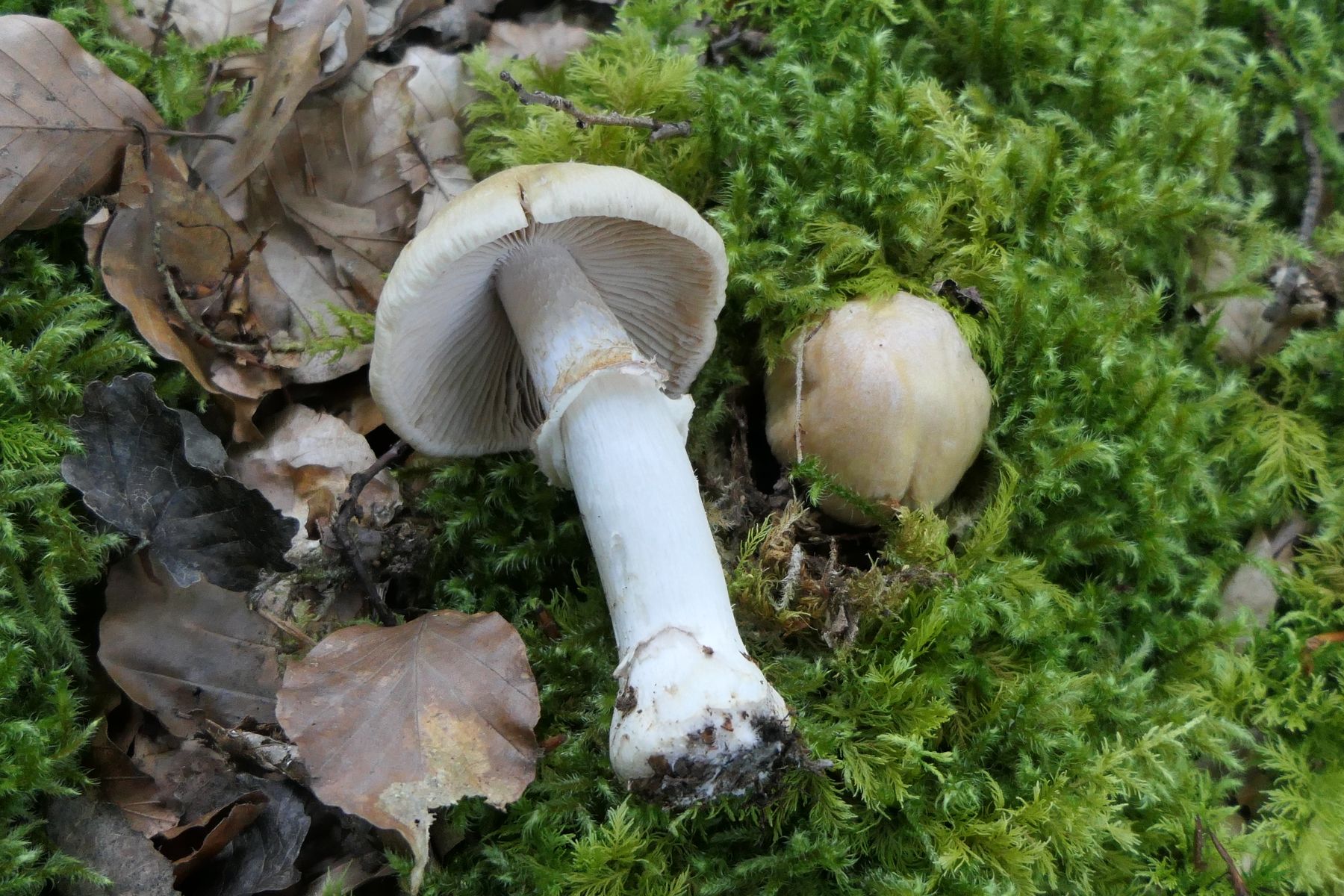 unter Buchen, auffällig war der graue Hut mit dunkler Mitte bei gleichzeitig kräftig lilafarbenem Stiel. Das habe ich in diesem Kontrast so auch noch nicht gesehen. Der Hut war etwas schleimig. Das Fleisch weiß.