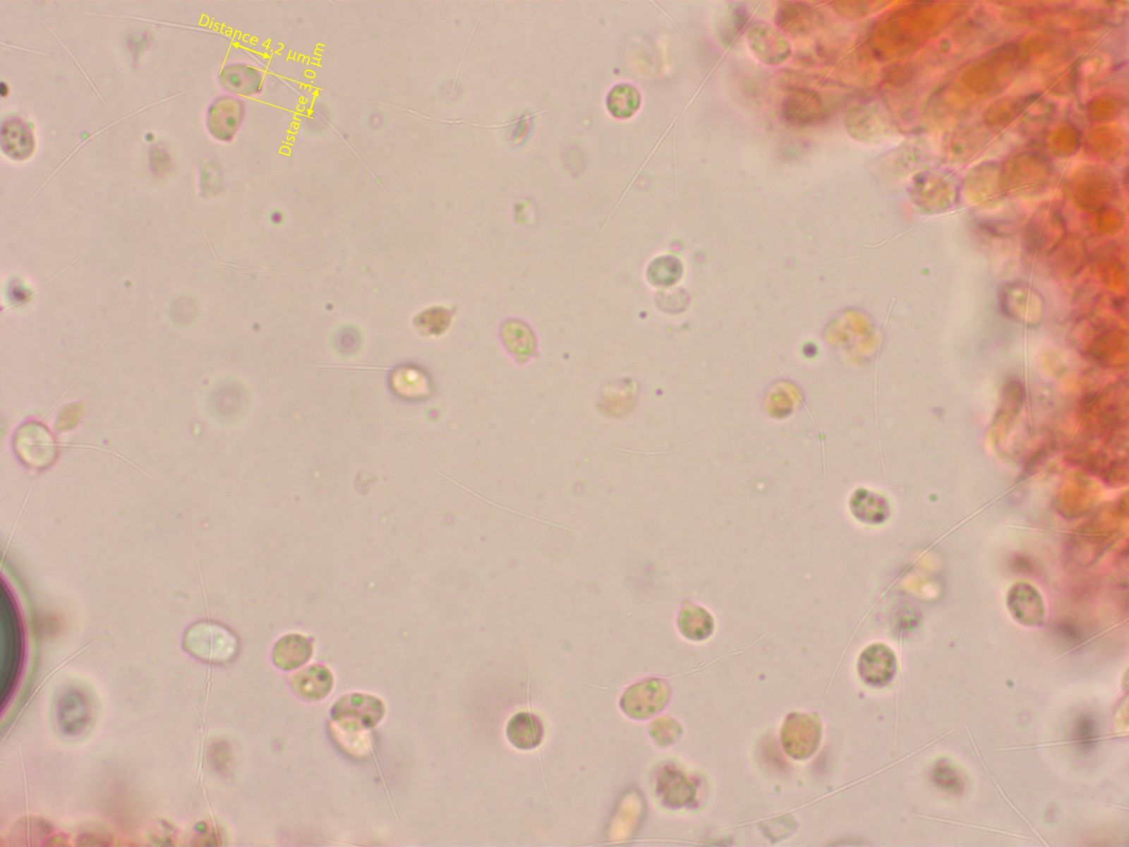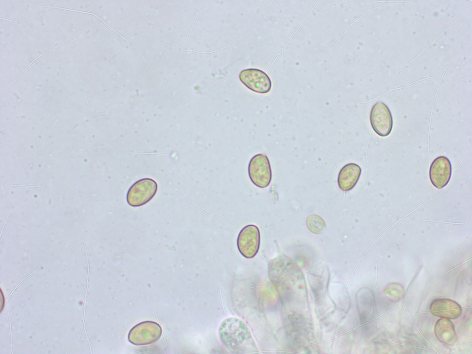Sporen klein: 7.5-8.4-9.6 x 4.9-5.3-5.8 µm, Q = 1.47-1.58-1.76 (n=20)