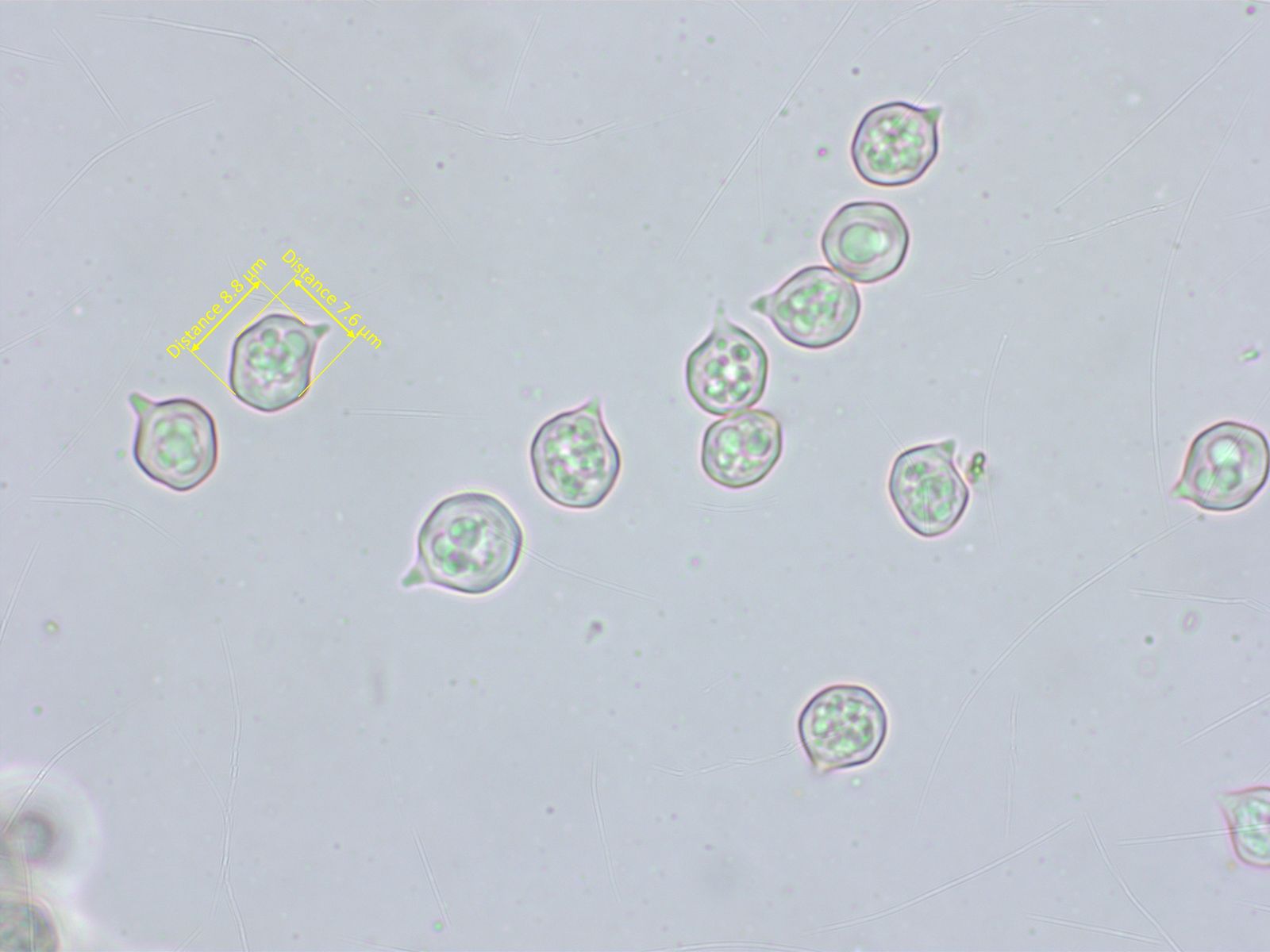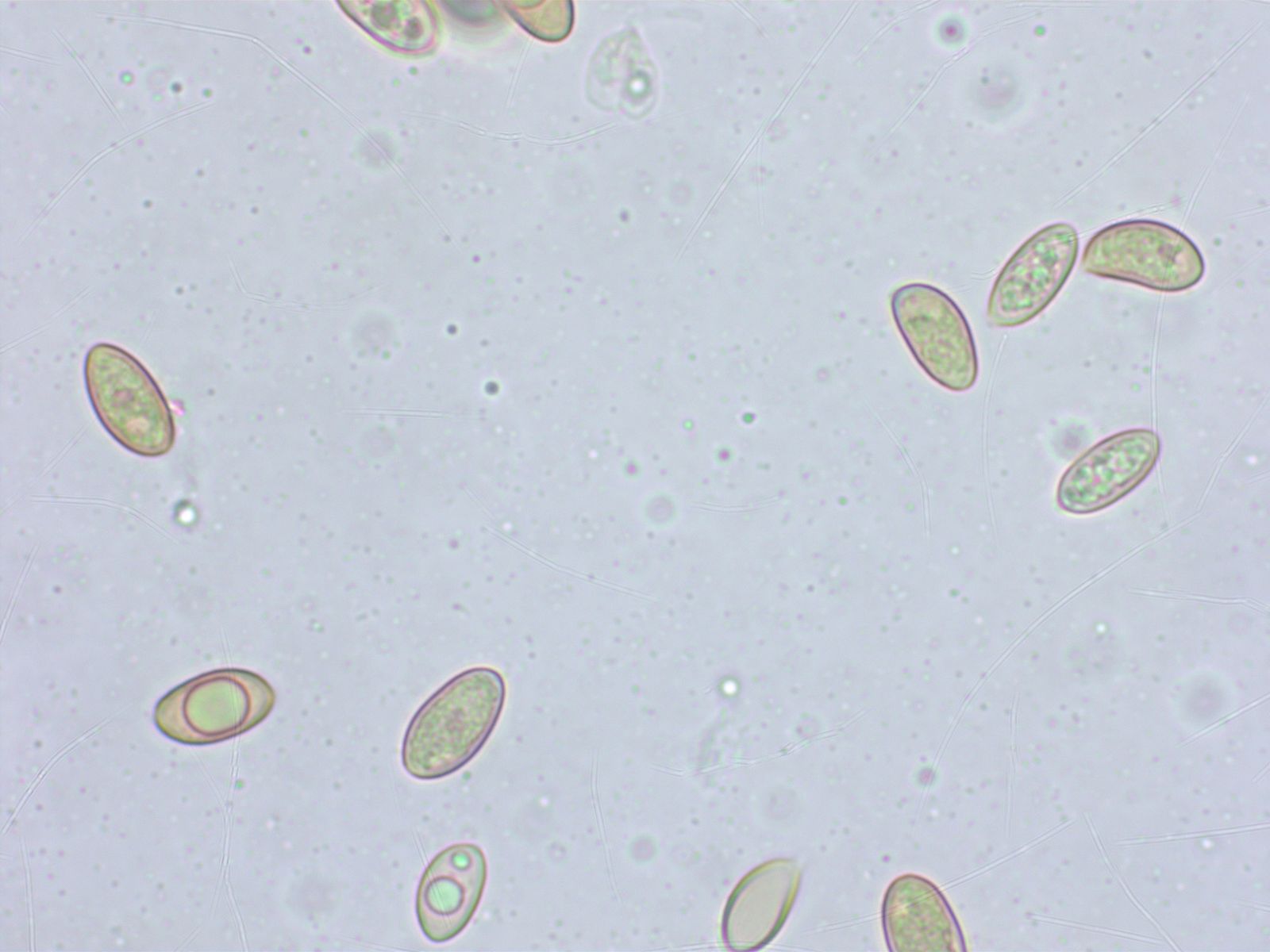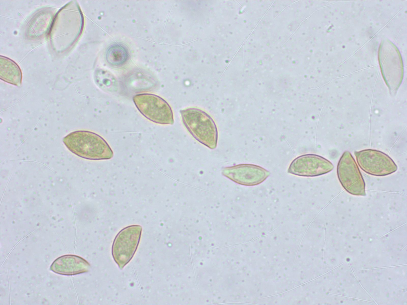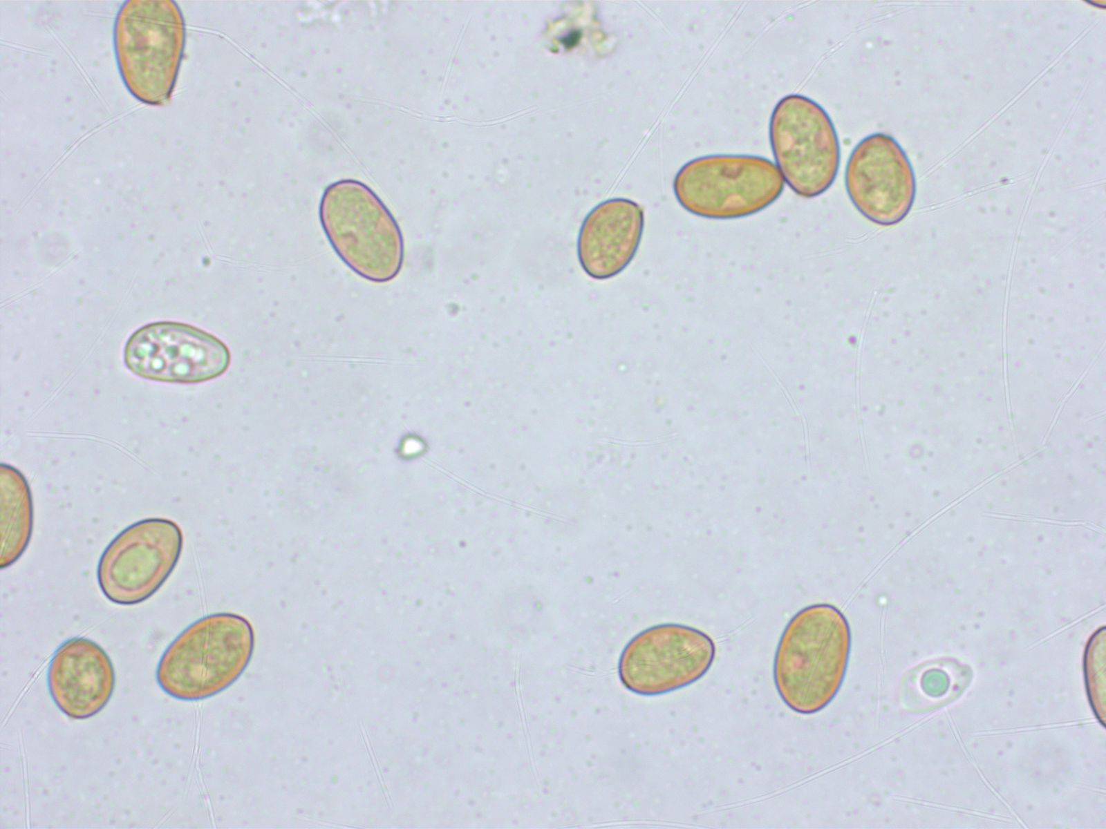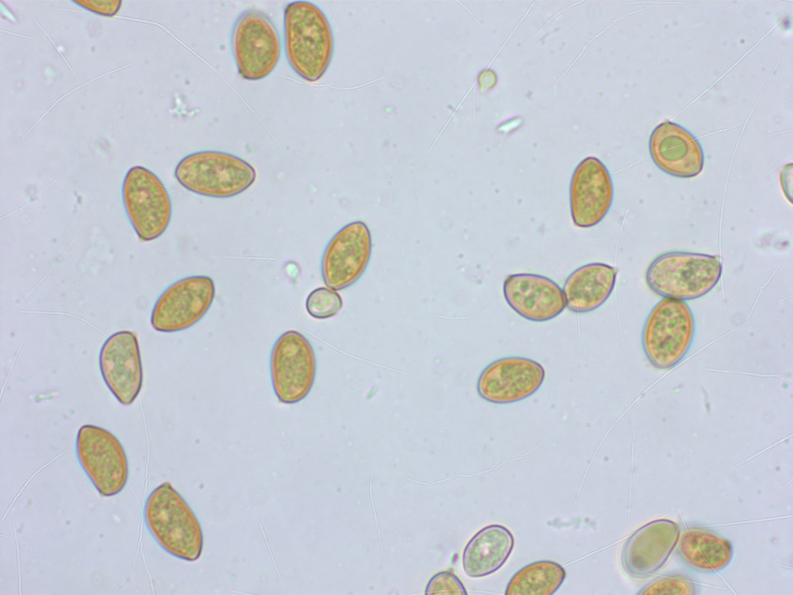Sporen 10.3-10.9-11.8 x 5.3-5.9-6.8 µm, Q = 1.66-1.86-2.03, D1-2, P0, O1