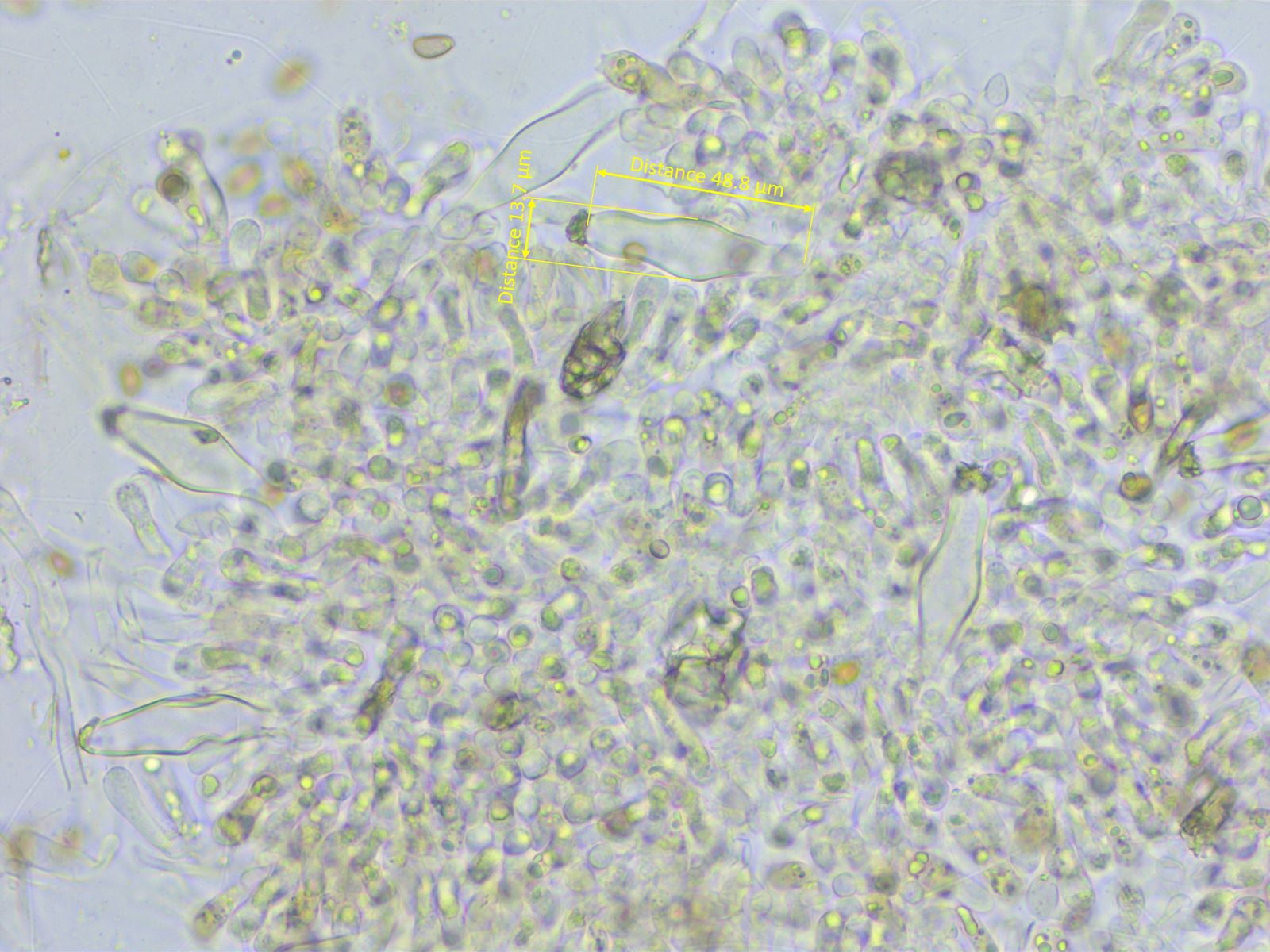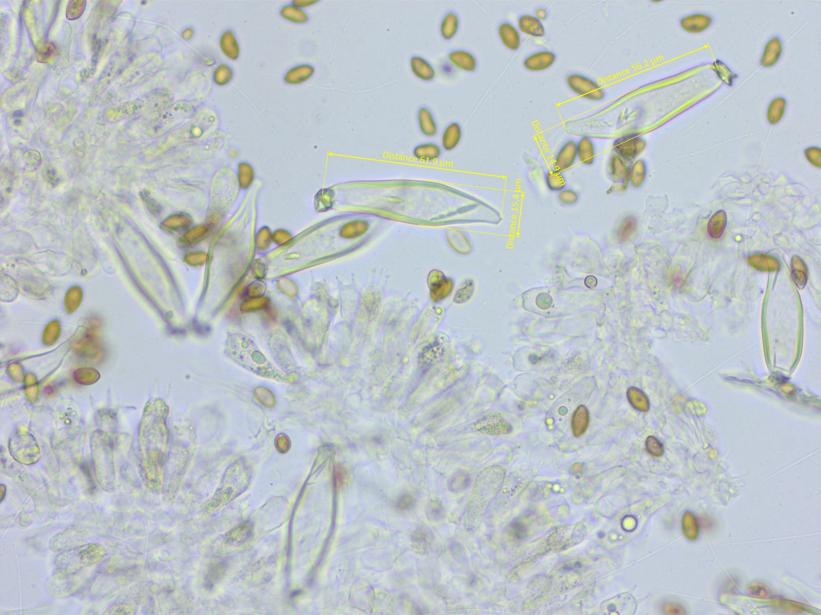 Cheilozystiden: 51-58-63 x 12-14-16 µm, n=11