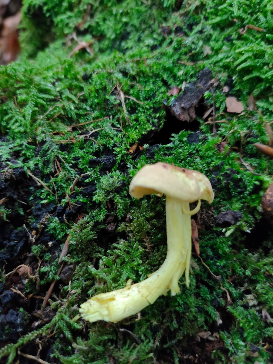 4. Dieser fast ganz gelbe Tricholoma artige FK roch sehr unangenehm und hat mit an eine Schwefelritterling denken lassen. Die Huthaut ist leicht rosa