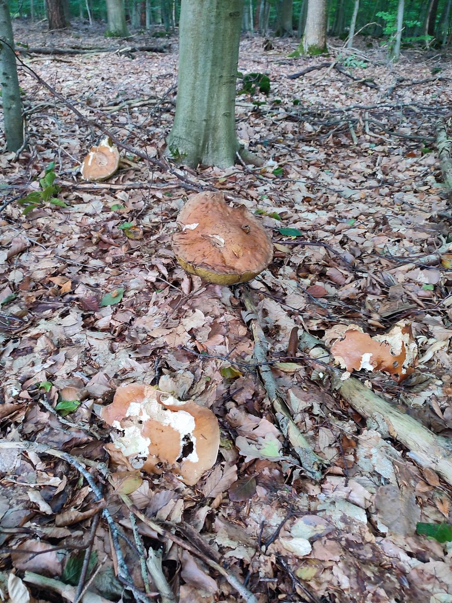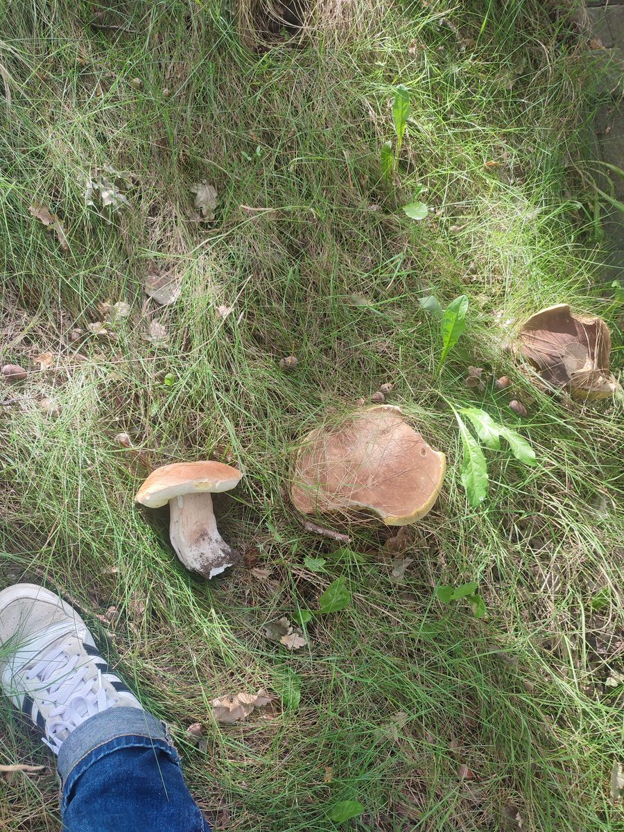 Ich hab den ersten Pilz gefunden! Eigentlich ca. 7, aber 6 von 7 waren schon zu alt. Alle sehr sehr groß, nördlich 300g/Stück. Steinis!