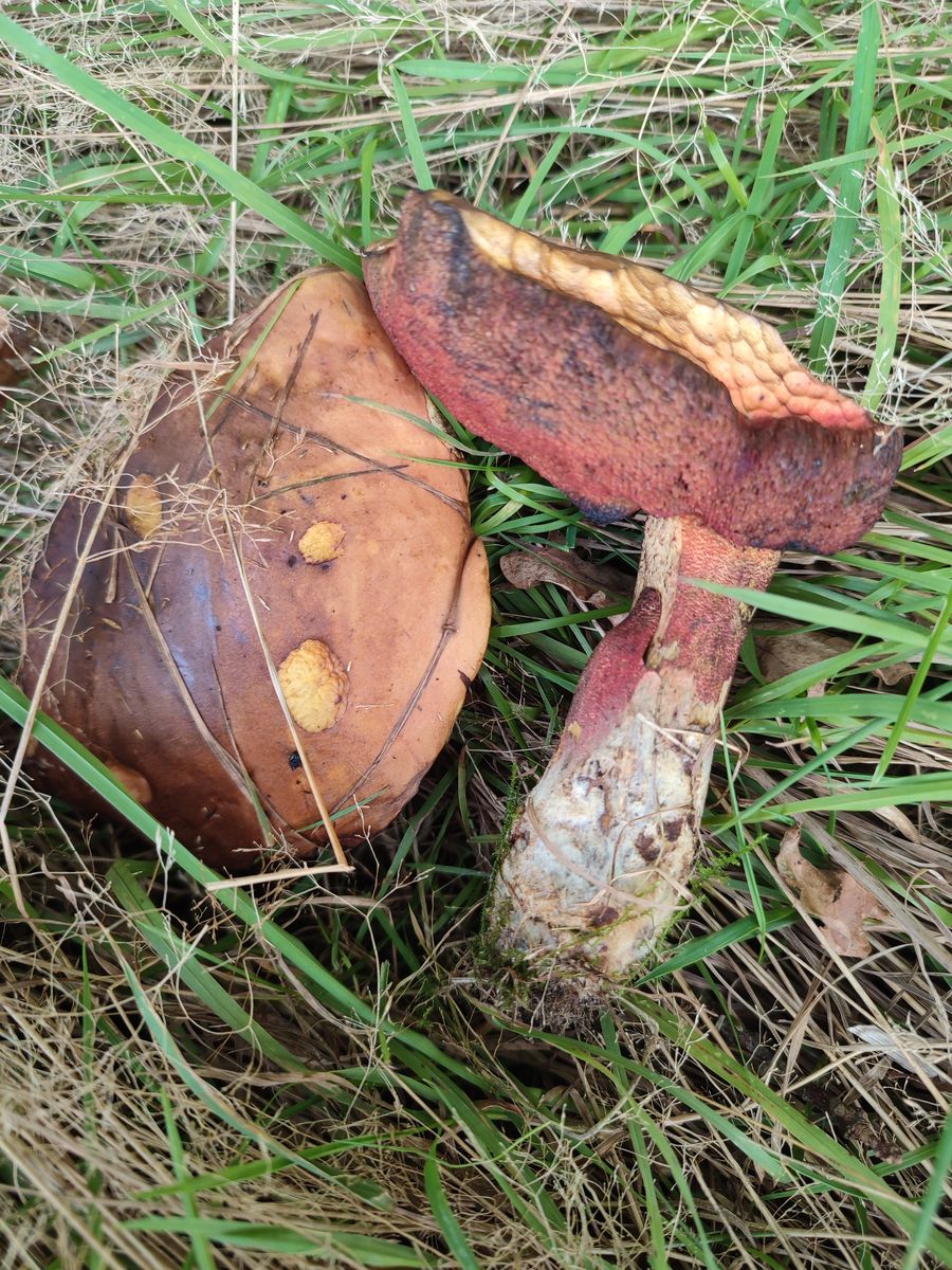 Bingo. Fast genau an der Stelle wieder ein riesen Fruchtkörper und wieder viel zu alt. In der Umgebung fanden sich dann auch diverse Kollegen gleichen Alters. Teilweise angeschnitten, die Stelle kennt also noch jemand.