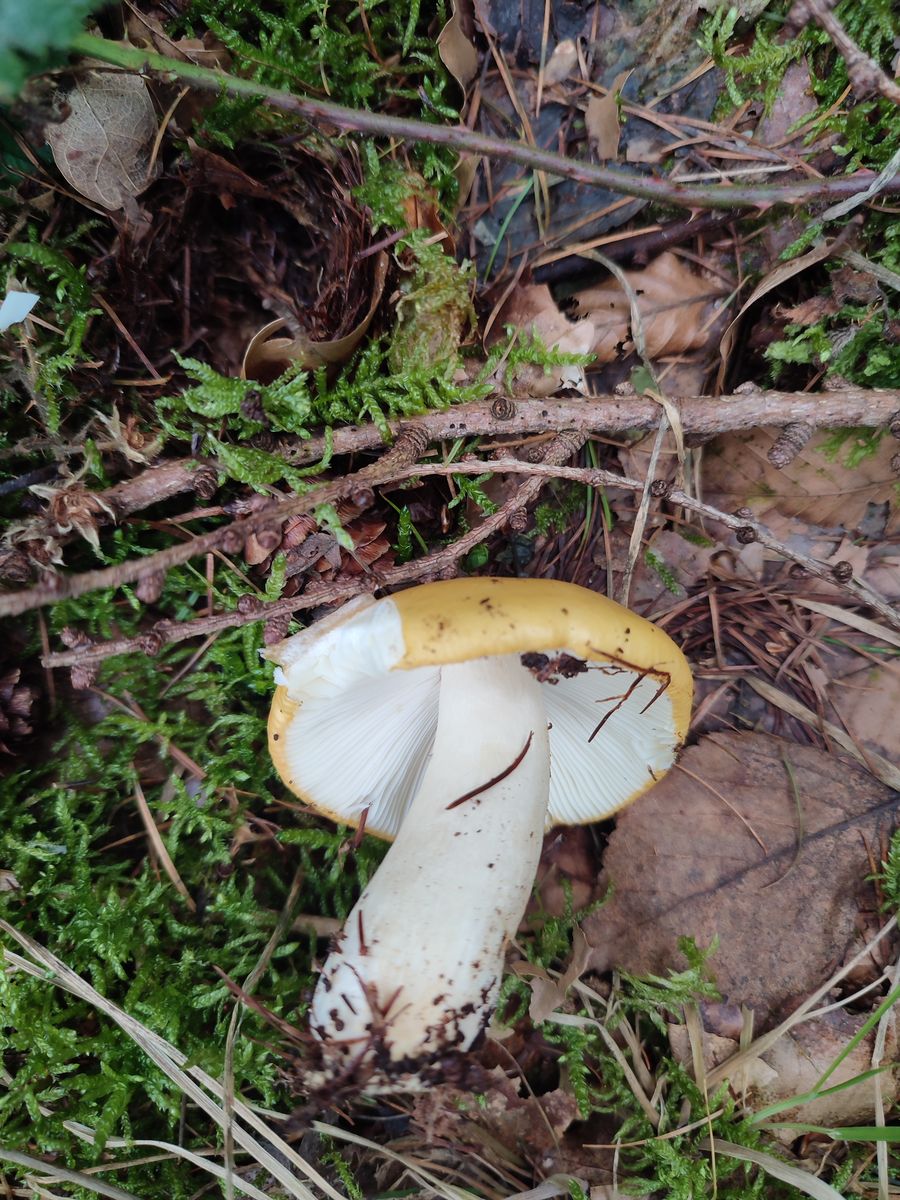 der gelbe Täubling, da würd ich Russula ochroleuca vermuten, den Ockertäubling.
