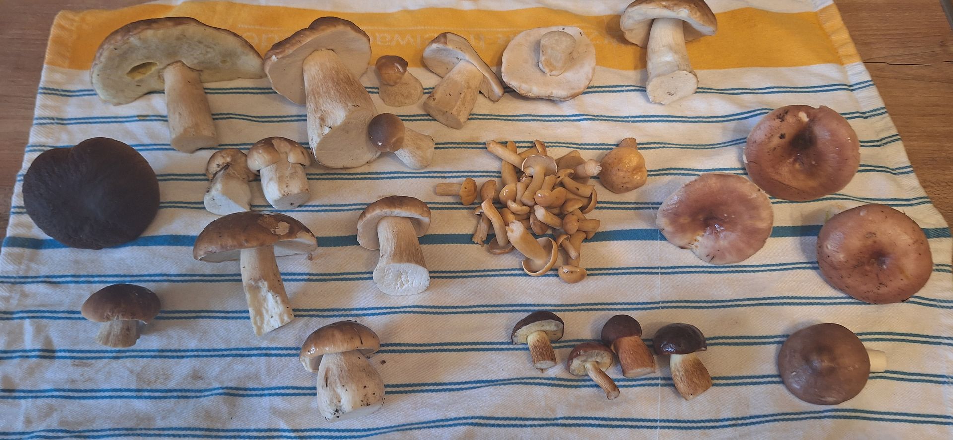 Maronen werden etwas mehr, Wulstlinge nach wie vor Mangelware, deutlich mehr Täublinge, an zig Flecken Kuhröhrlinge und Butterpilze, Reizker nach wie vor eher mau. Rotfußröhrlinge gabs auch so einige zu sehen, aber allesamt Matsch und oder Schimmel.
