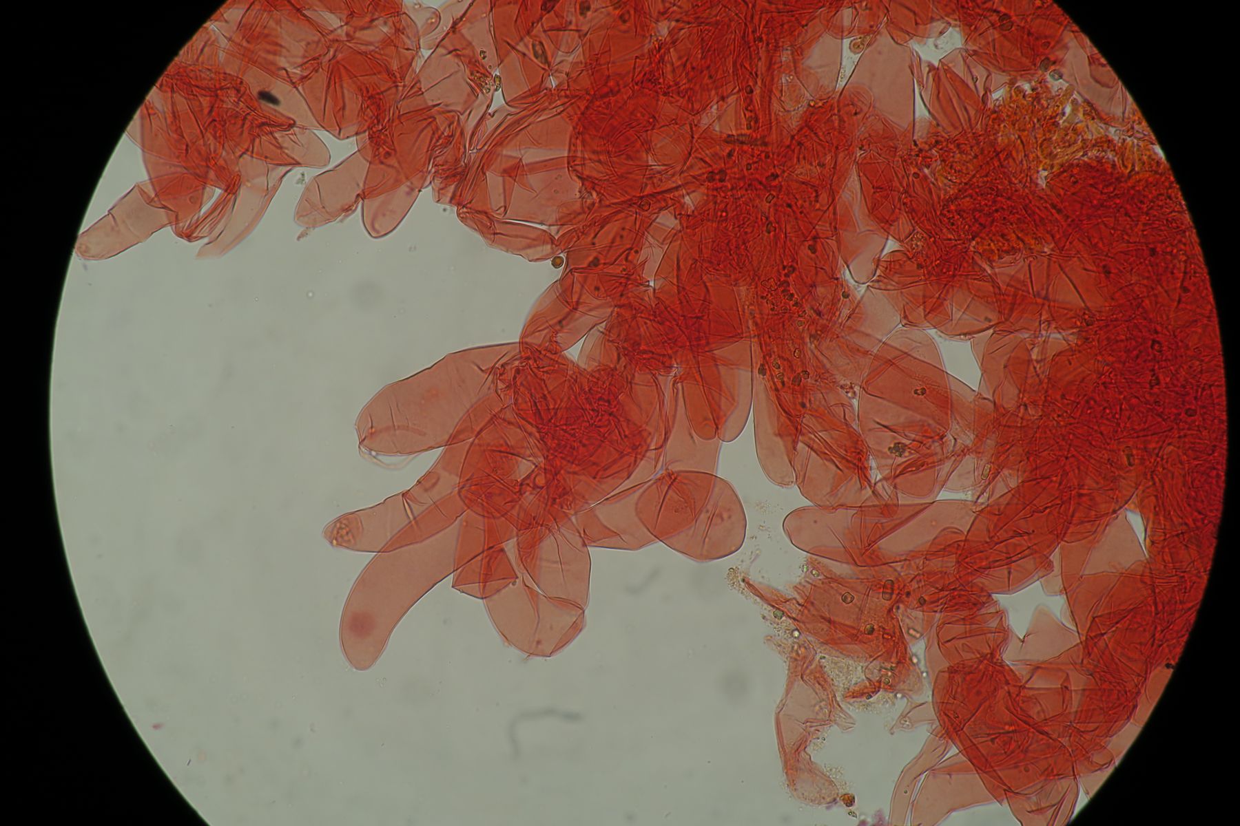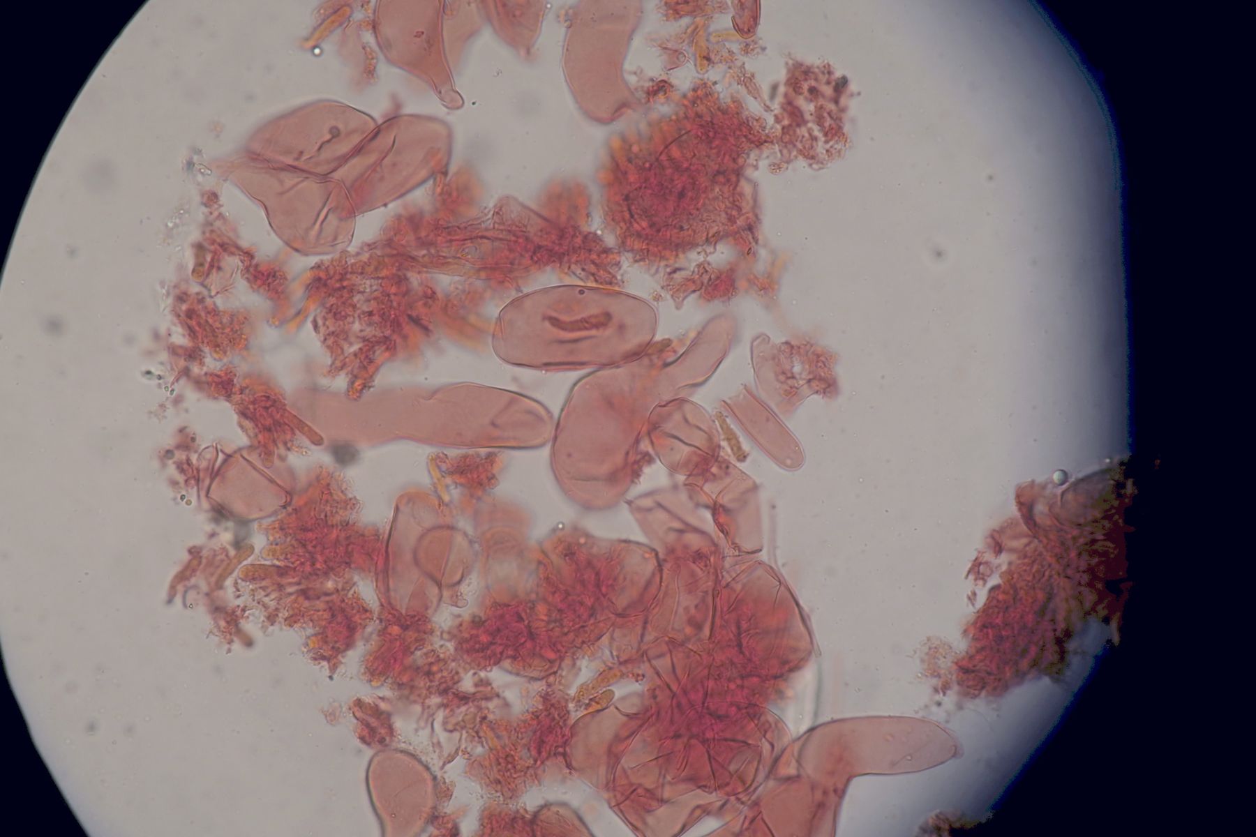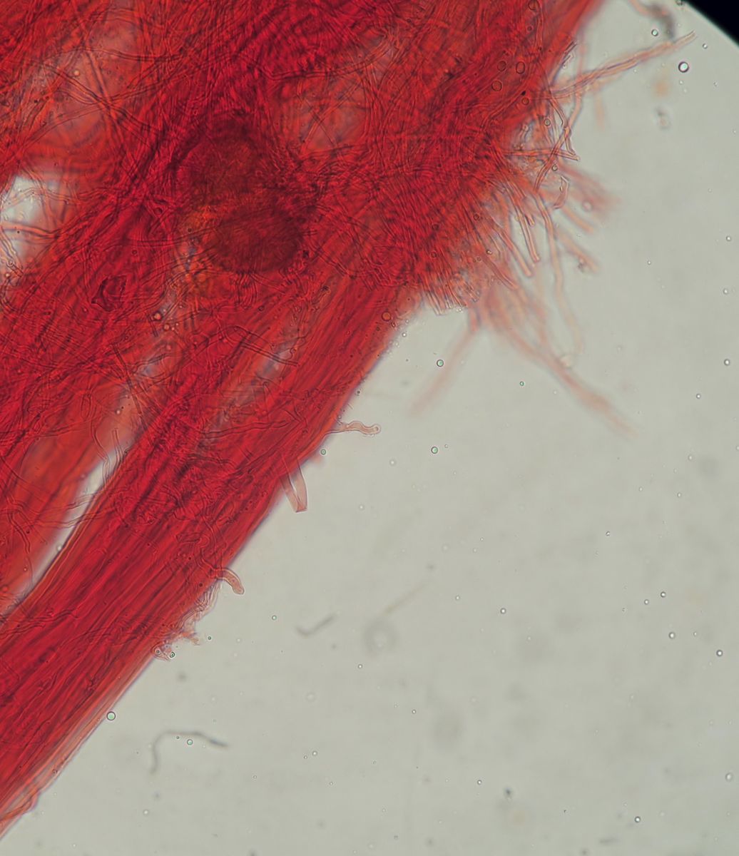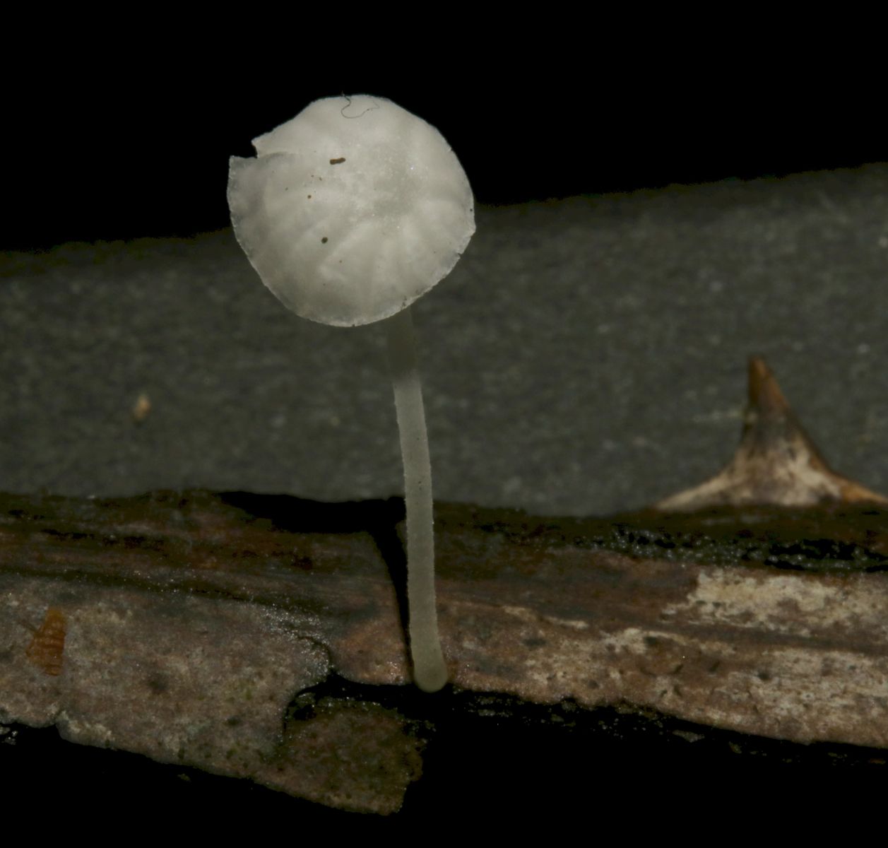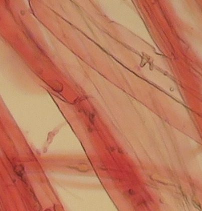 Some time ago I have found a cluster of small Mycena growing on decaying bramble sticks (Rubus ulmifolius) having a purely white and slightly transparent colour (esp. the stipe), fading a bit into beige when old. Cap 7-12 mm wide with non-numerous, spaced (not crowded) lamellae, horizontally-arched not particularly decurrent. Basidia 4-sporous (sometimes 2). There were swollen hyphae from sub-globose to broadly cylindrical, sometimes with a short foot (sphaeropedunculate) which I think were cheilo or/and pleuro cystidia (40-90 x 25-50 um). Spores 8-10 x 4.5-6 um (Q 1.5-1.9) ovate-elliptical to moderately broadly ovate, very rare to find in slides. I didn't check well the pileipellis. The stipe was more or less glabrous but I think I got a slide showing some caulocystidia.