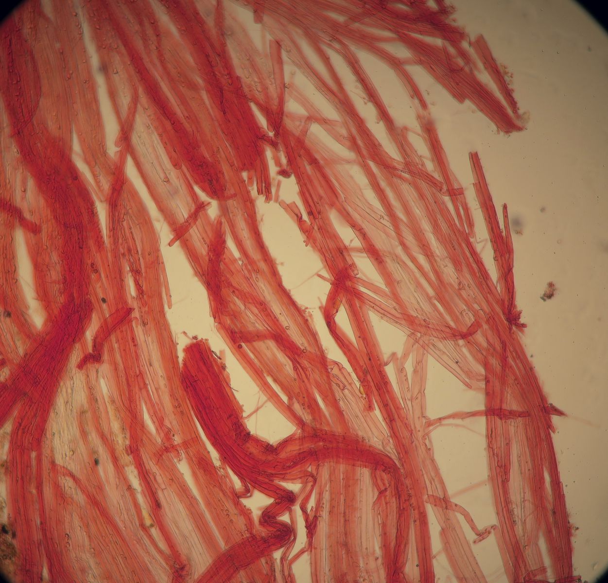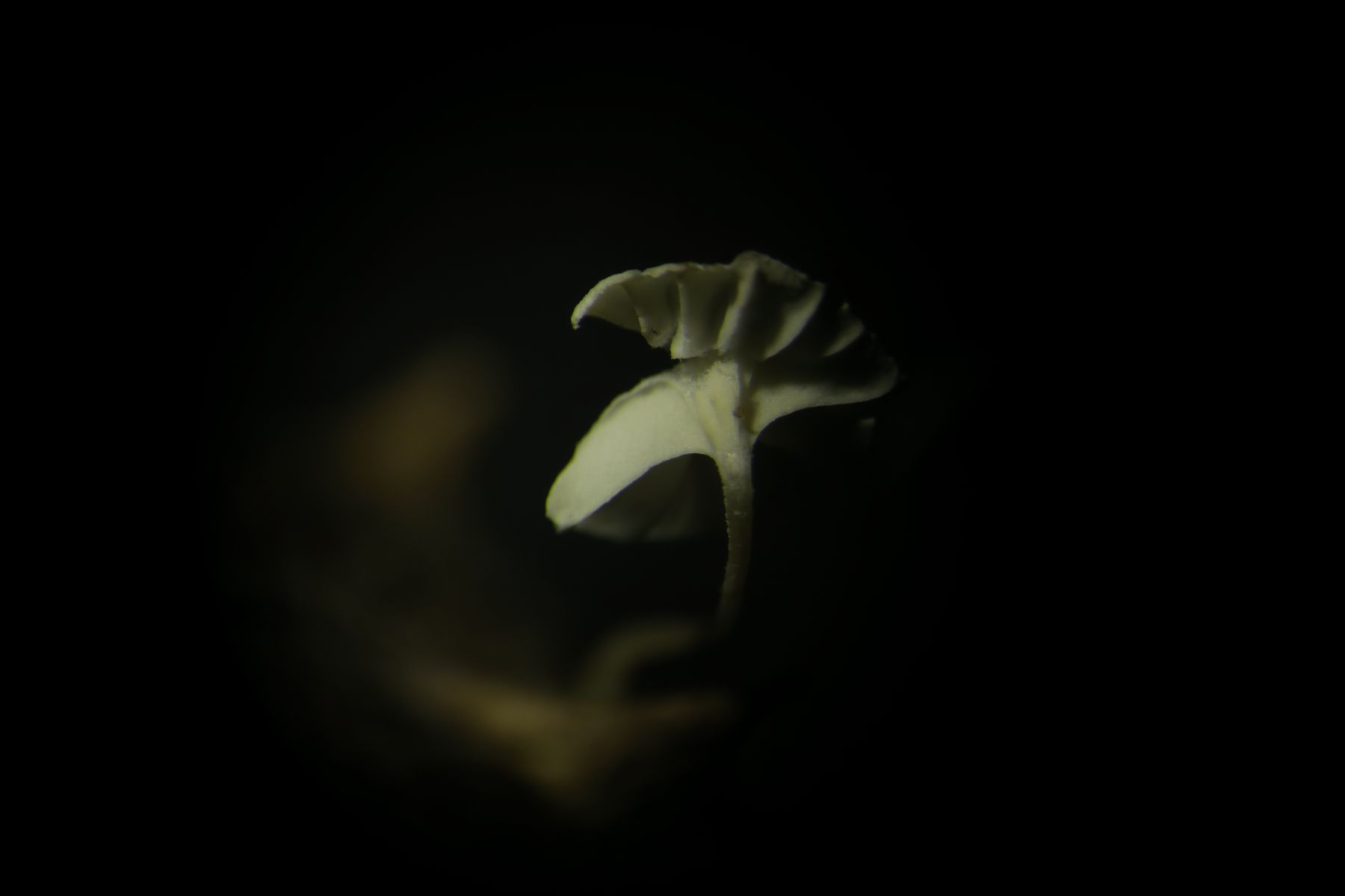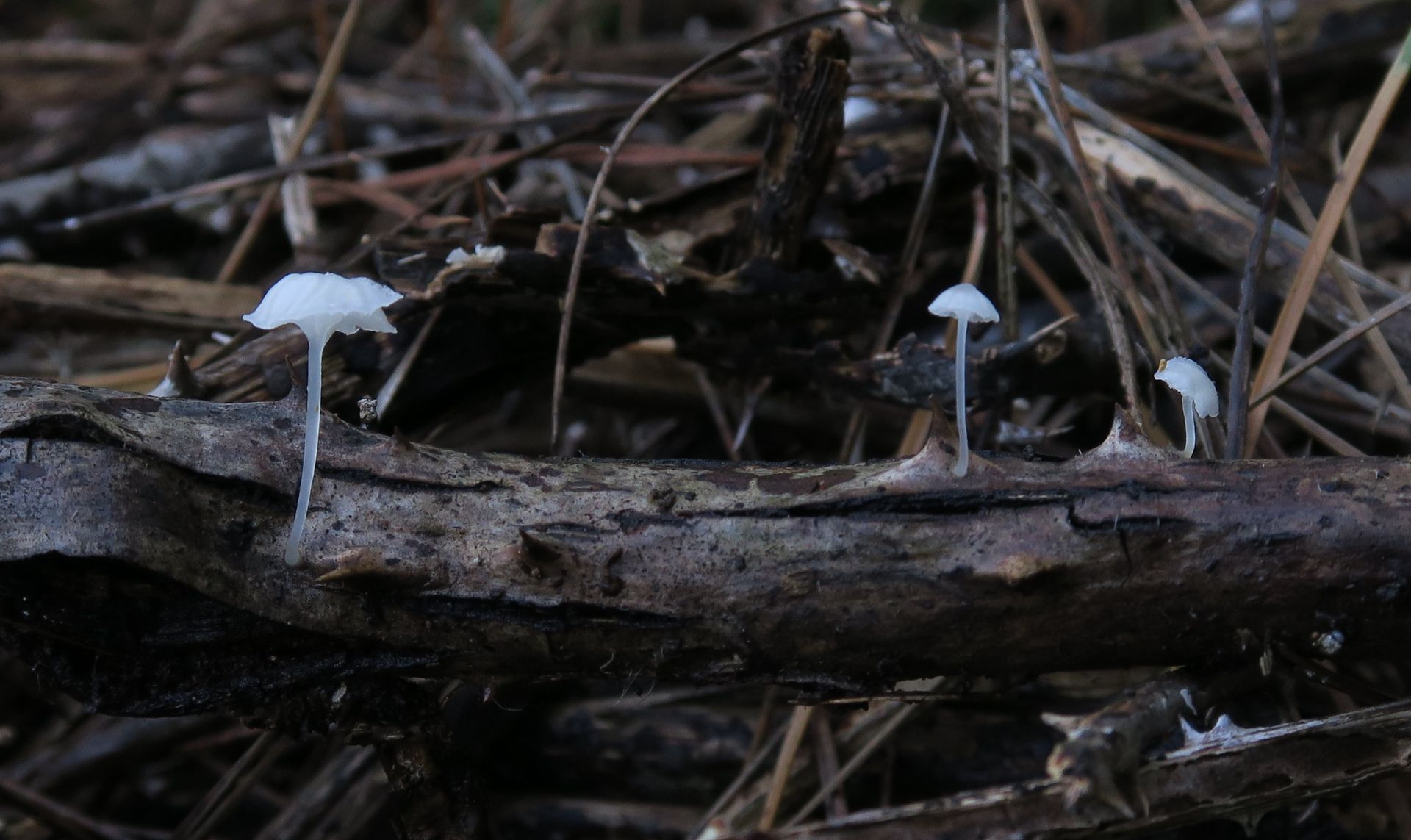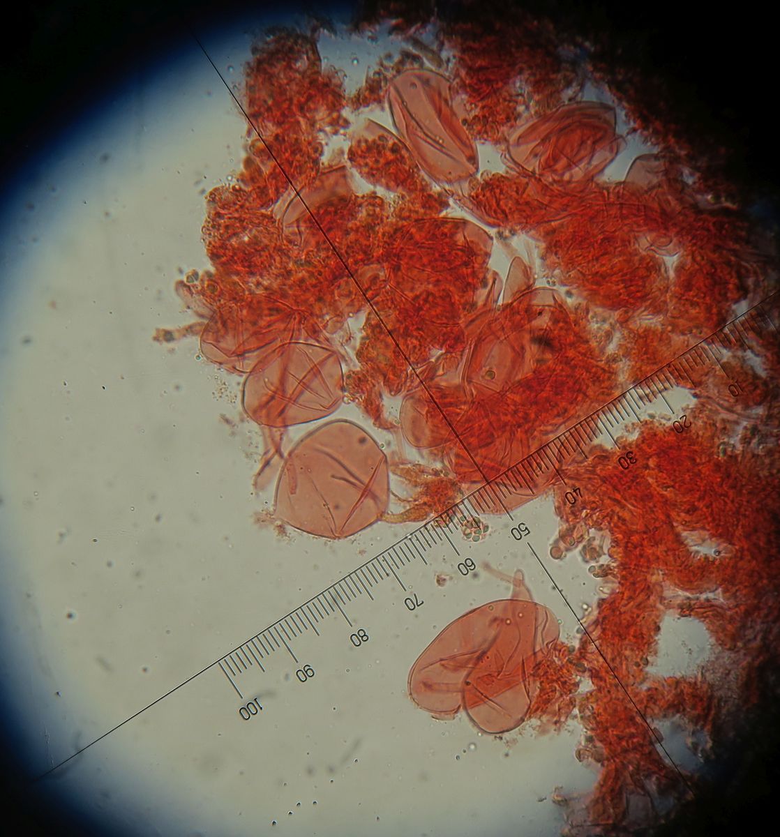 Some time ago I have found a cluster of small Mycena growing on decaying bramble sticks (Rubus ulmifolius) having a purely white and slightly transparent colour (esp. the stipe), fading a bit into beige when old. Cap 7-12 mm wide with non-numerous, spaced (not crowded) lamellae, horizontally-arched not particularly decurrent. Basidia 4-sporous (sometimes 2). There were swollen hyphae from sub-globose to broadly cylindrical, sometimes with a short foot (sphaeropedunculate) which I think were cheilo or/and pleuro cystidia (40-90 x 25-50 um). Spores 8-10 x 4.5-6 um (Q 1.5-1.9) ovate-elliptical to moderately broadly ovate, very rare to find in slides. I didn't check well the pileipellis. The stipe was more or less glabrous but I think I got a slide showing some caulocystidia.