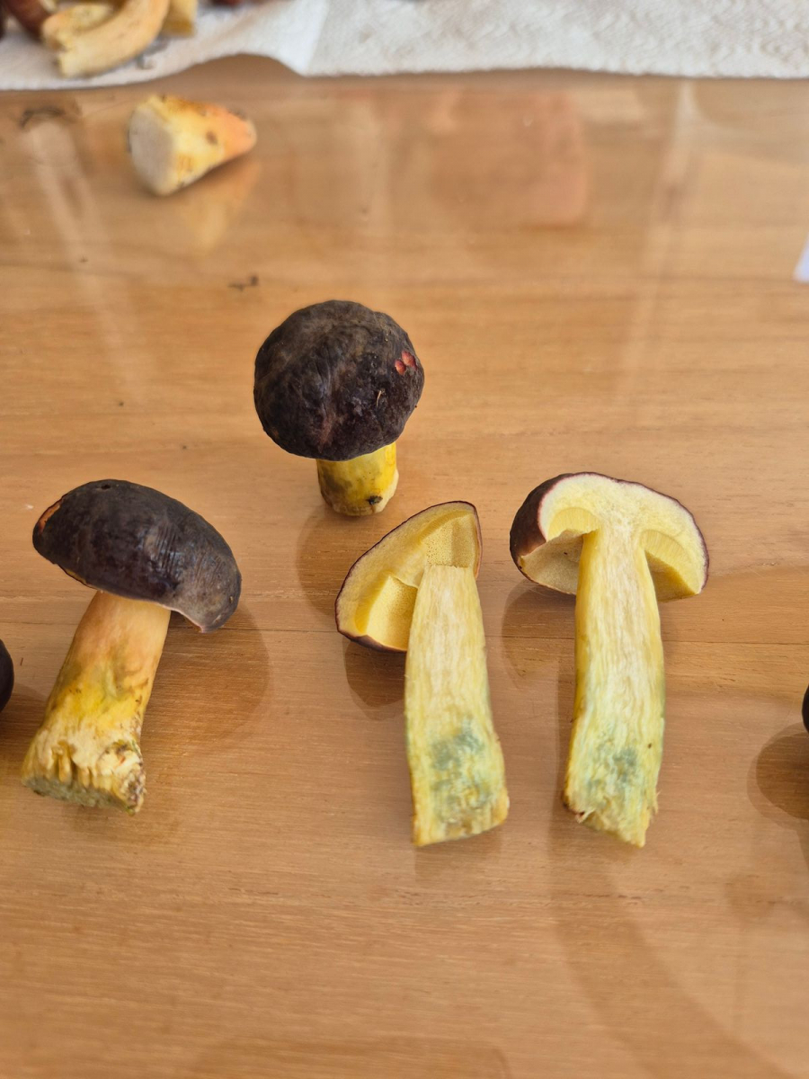 Der Stil ist sehr gelb, die Kappe sehr dunkel, fast schwarz, samtig und trocken.