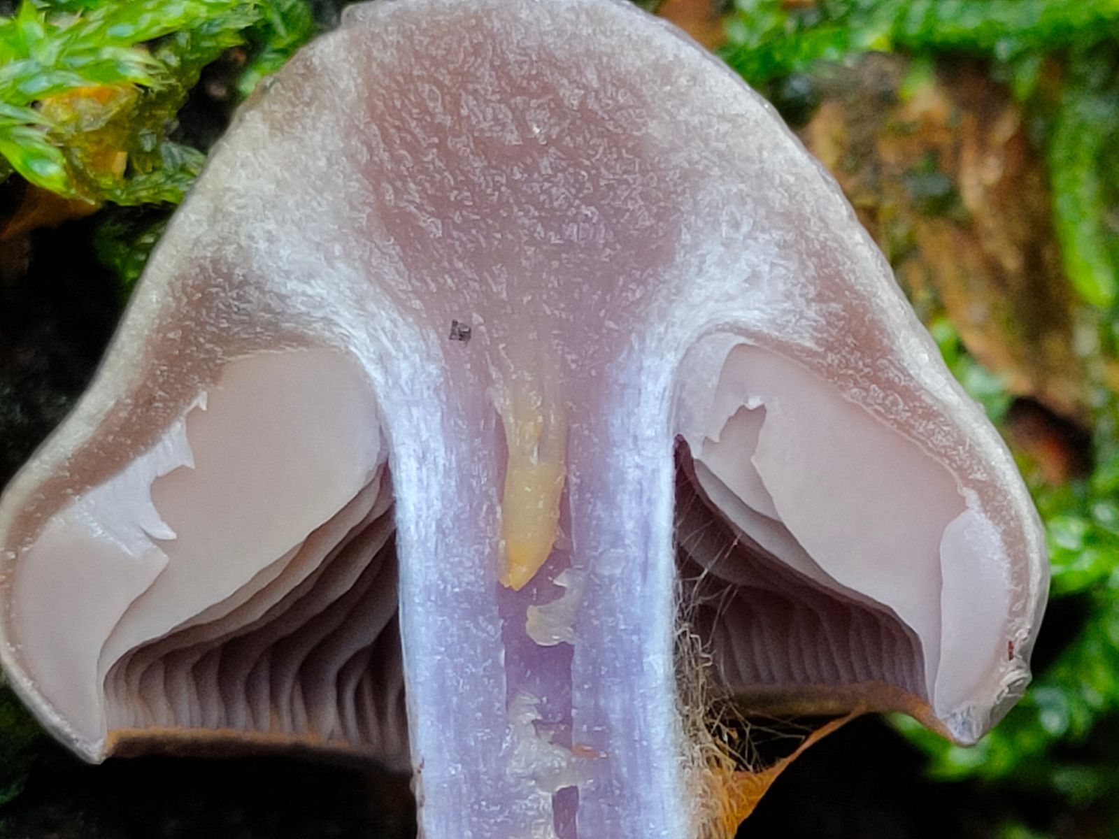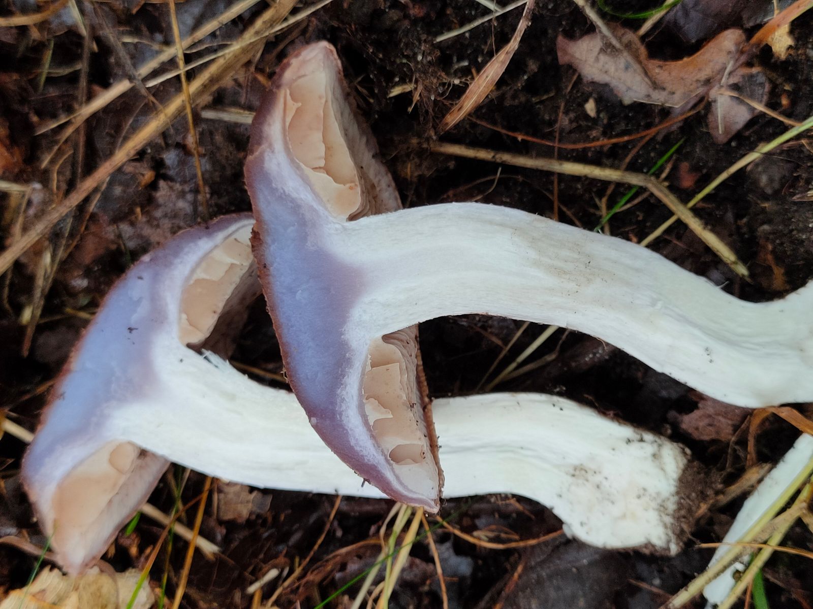 Es war leider nur ein recht junger FK der sowohl am Hut, als auch am Stiel bläulich/violett war. Das Schnittbild zeigt ebenfalls diese Färbung.