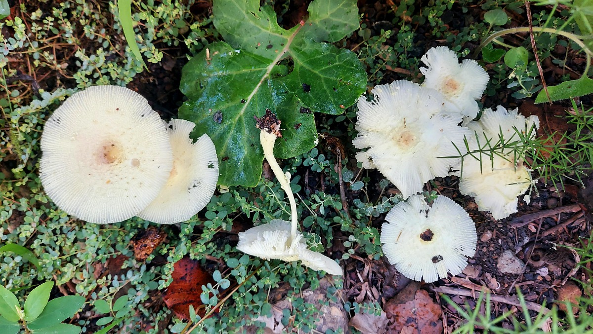 Here, I want to present an interesting early-fruiting species that I only have (for now) macrophotographs because I saw this in a public garden and was not prepared for collection (also images from my mobile) but I am sure it is a Leucocoprinus. Usually these early-fruiting yellowish basidiocarps in artificial soil are L. birnbaumii but this one was different in: