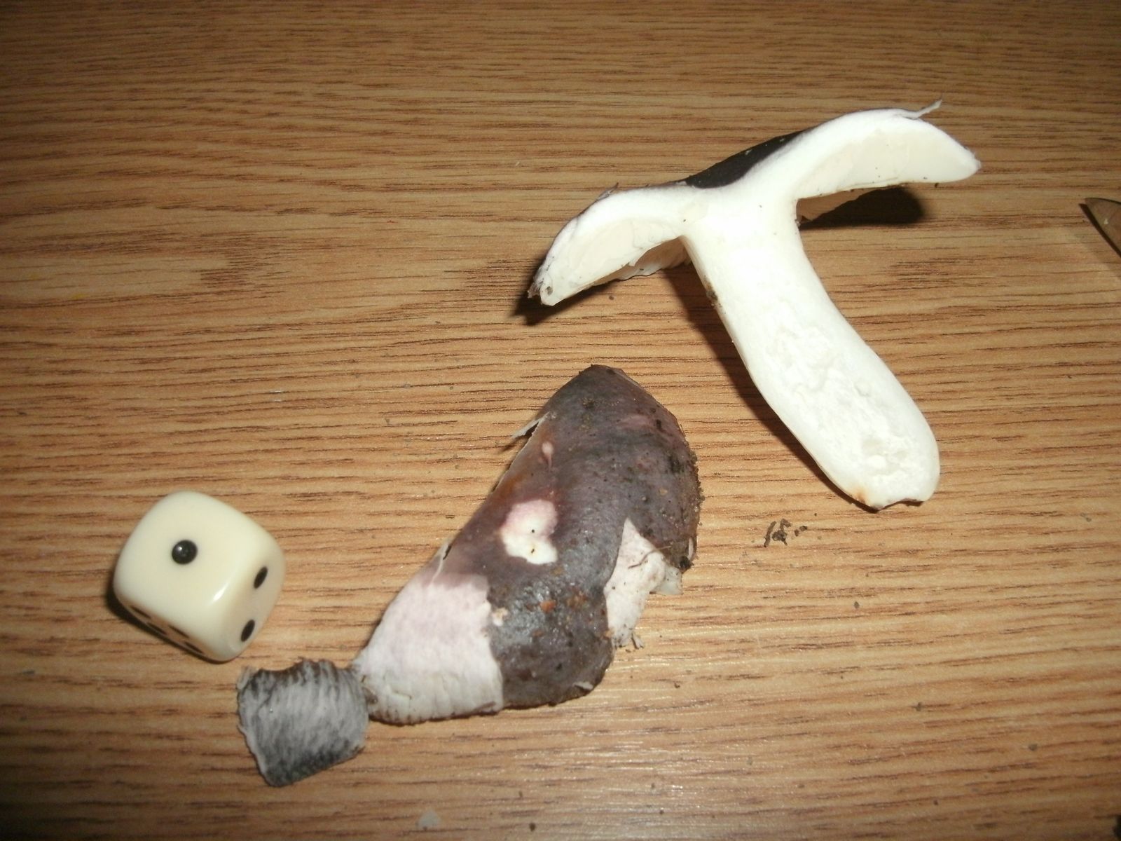 Auf dem Weg fand sich noch ein einzelner Täubling in Umgebung von einigen Buchen. Ich habe weder bitteren noch scharfen Geschmack wahrgenommen. Der Stiel hat keine Reaktion auf NH3, KOH oder Anilin gezeigt. Eisensulfat hab ich leider noch nicht.