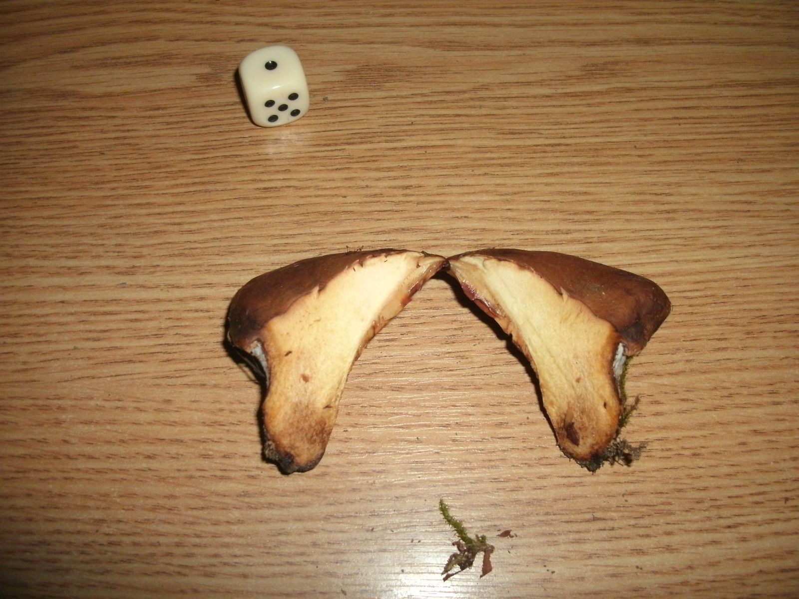 Nicht weiter fotographiert/mitgenommen habe ich noch einen Ansatz von wohl einem goldgelben Zitterling (aber noch sehr klein, könnte auch was anderes werden?), einen sehr überständigen Perlpilz (zumindest ein paar rötliche Stellen sichtbar, so intensiv hab ich mir den dann auch nicht angeschaut), und ein paar Babys, die noch fast komplett in ihrer Volva steckten (weiße Lamelenpilze...), Pfennigkrusten, und ein paar wenige Dickröhrlinge (schwarzes Netz, gelbe Röhren, trockener Hut und ziemlich groß mit nicht nachgemessenen 15cm Durckmesser) und einiges an anderen hölzischen Pilzen.