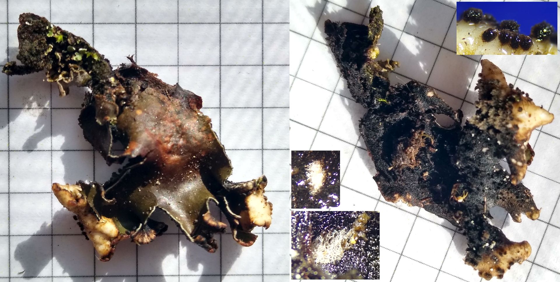 Bild 12 Scytinium subtile - Fruchtkörper und Thallus in trockenem Zustand