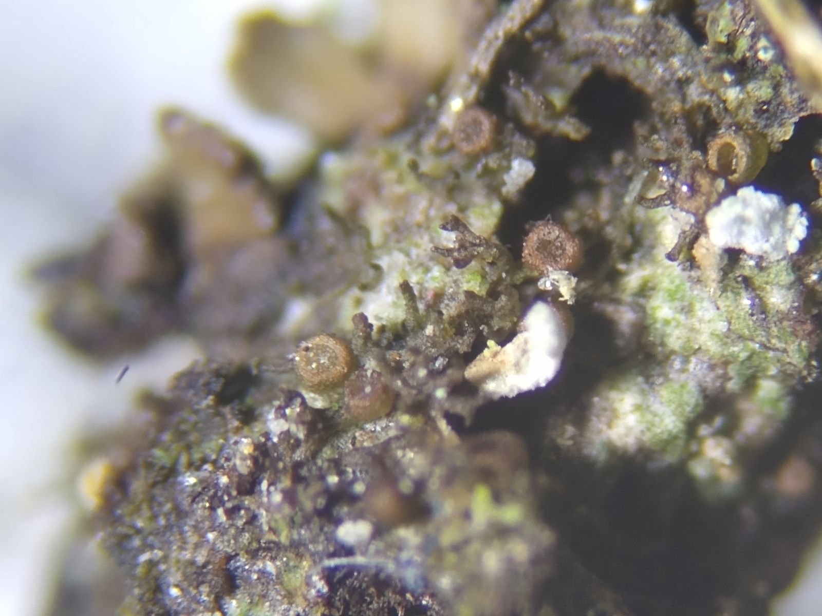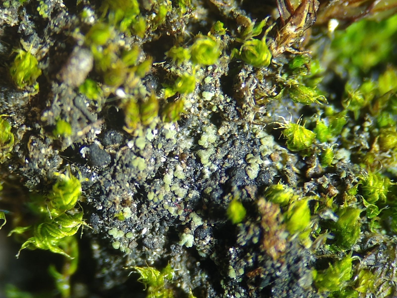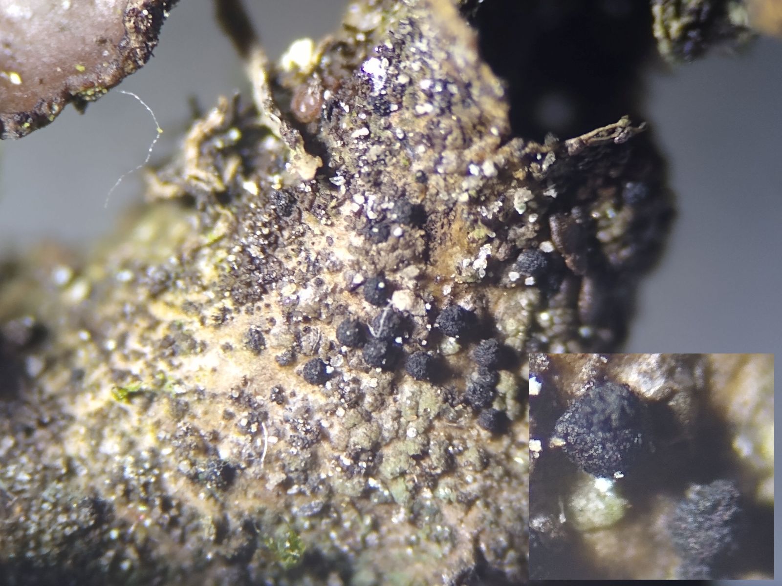 Sie verrät sich durch ähnlich winzige, fast kugelrunde Apothecien (150-200 µm):