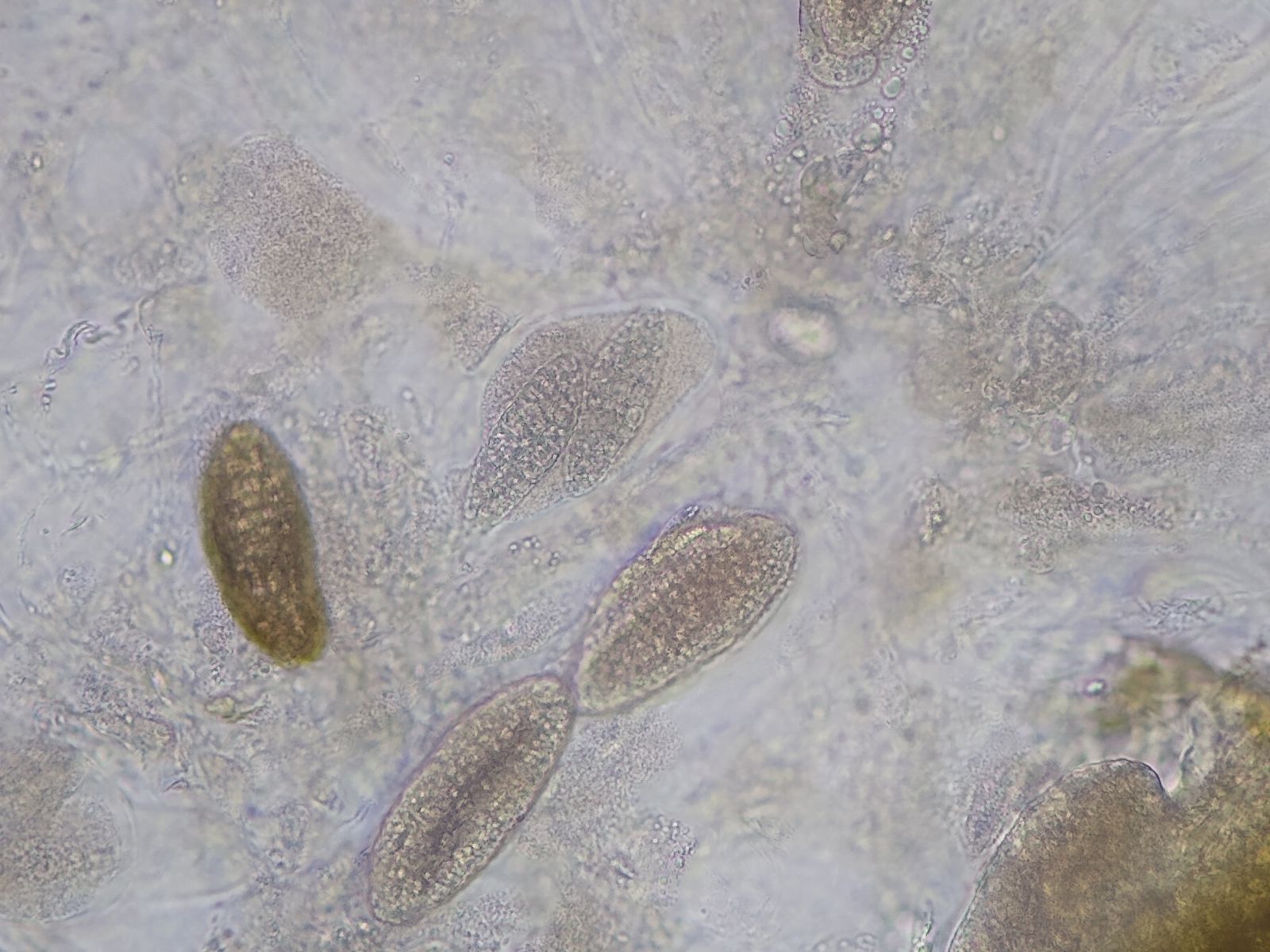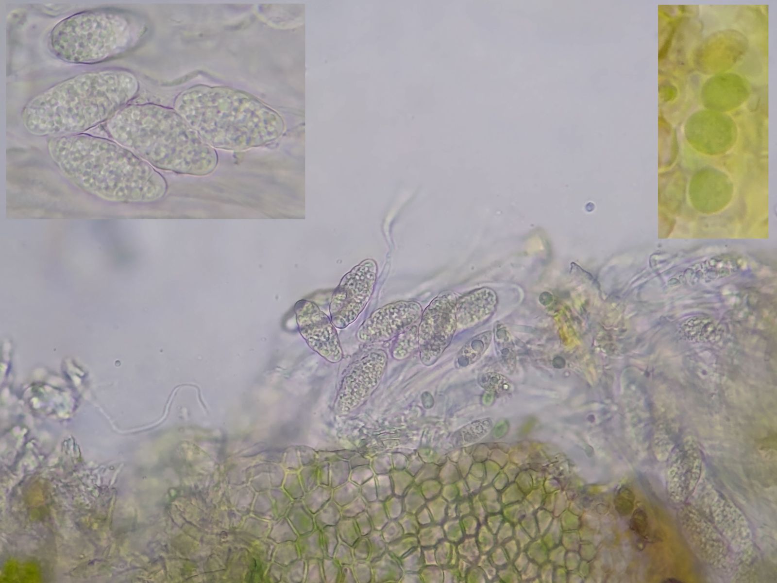 Bild 9 Gequetsches Hymenium mit Sporen gemauerten Sporen, (1-)2 Sporen pro Ascus. Hymenium gelatinös auflösend
