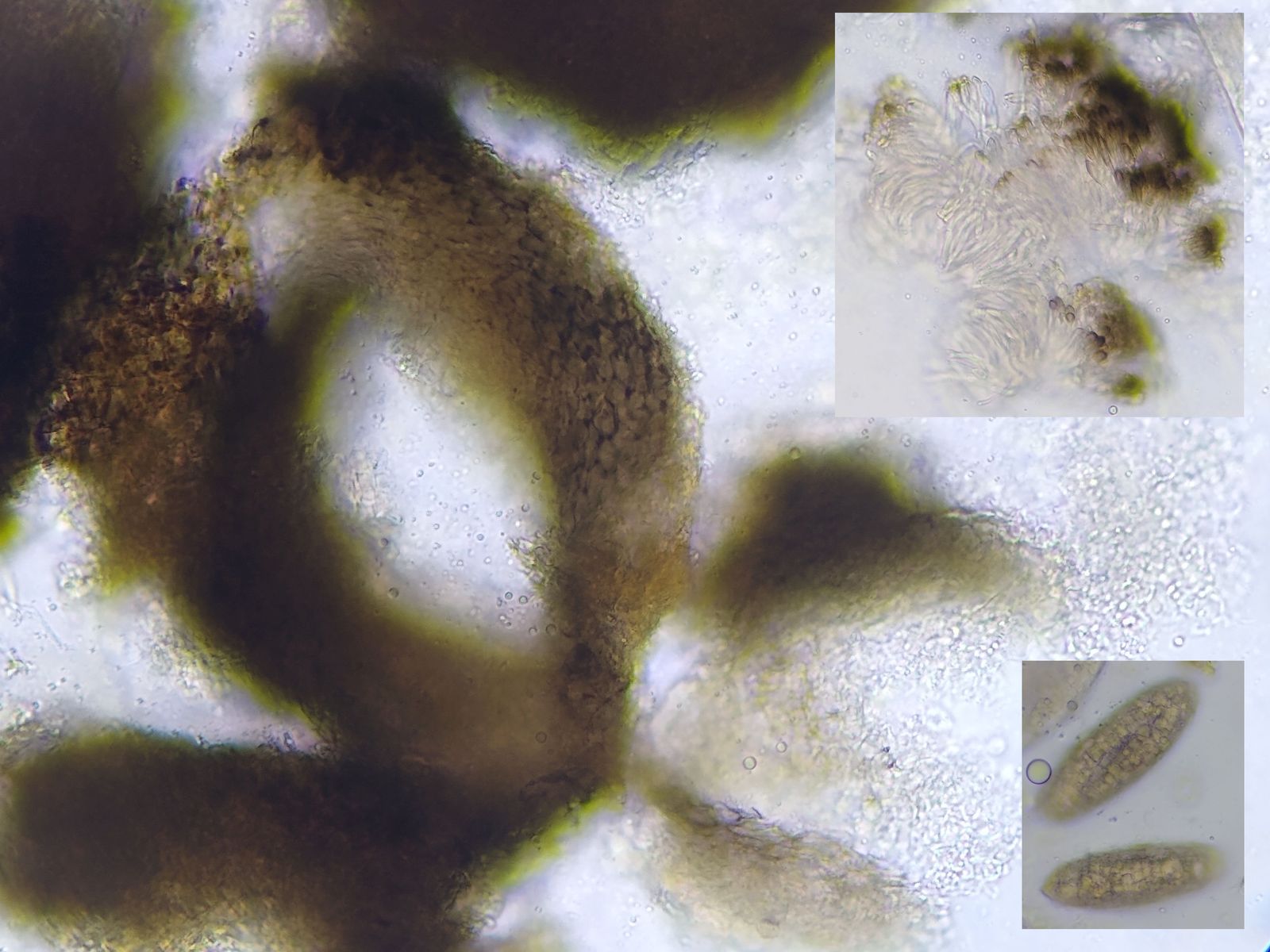 Die Asci sind zweisporig, die Sporen sind leicht bräunlich, reichlich groß (75-95 x 25-38 µm) und vielzellig gemauert.