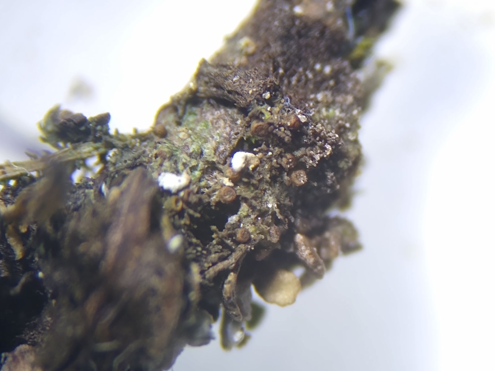 Bei der Peltigera selbst bin ich mir nicht sicher, was aber bei dem Alter und Zustand der Flechte nicht verwundern muss.