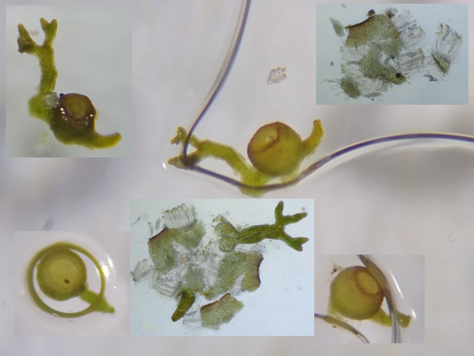 Den Thallus erkennt man im feuchten Zustand sehr viel besser. Erstaunlich die Farbänderung nach gelblich grün!