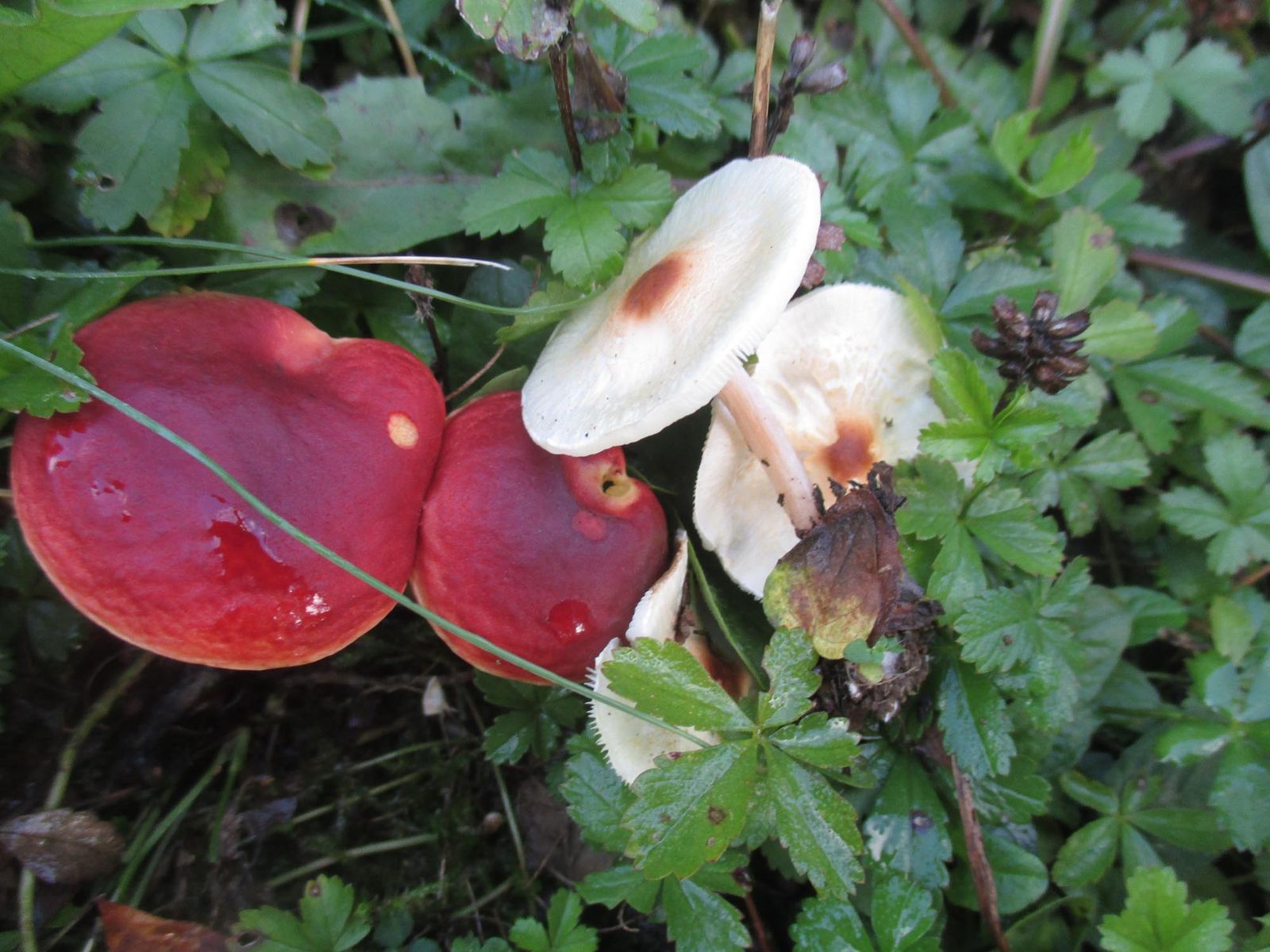 Hortiboletus rubellus - Blutroter Röhrling zusammen mit dem Stinkschirmling (Lepiota cristata)