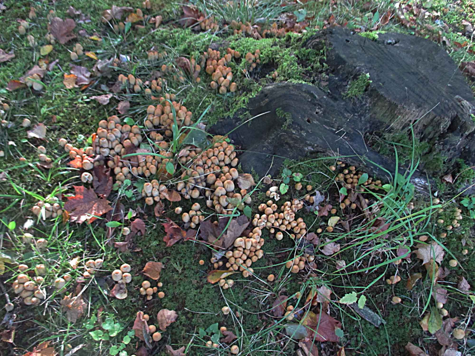 Ein Tintling, vermutlich Coprinellus disseminatus aus der Glimmertintlingsecke
