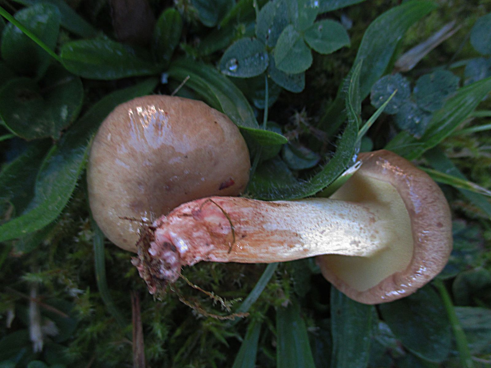 Suillus collinitus - Ringloser Butterpilz, ein wenig hell geraten aber mit rosafarbenen Basismyzel sollte es der sein