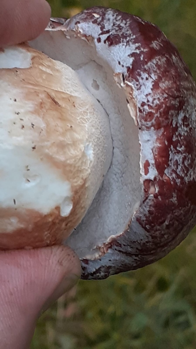 das ist kein Befall, junge Steinpilze wie hier der Rothütige Steinpilz sind bereift was wohl rudimentäre Reste einer früher mal existierenden Gesamthülle sind,