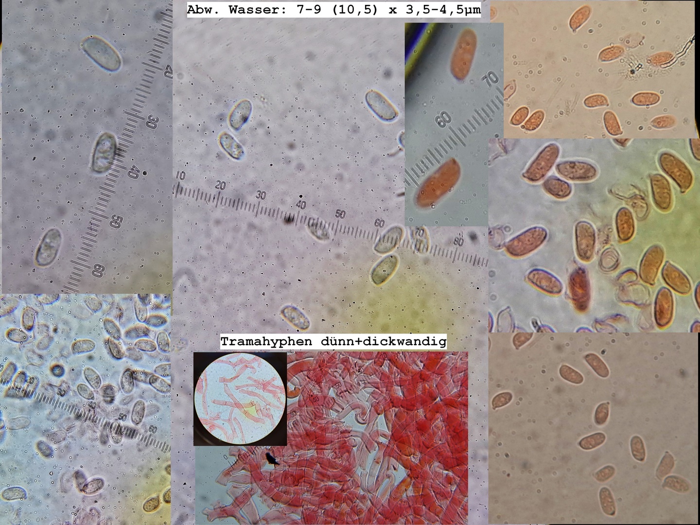 Die Sporen kommen mit (6.5)7-9(10,5) x 3,5-4,5ym hin, sind aber kürzer als bei Lu angegeben mit einer großen Bandbreite von (6.5) 7-12 ×3,5-4,5(5)ym.