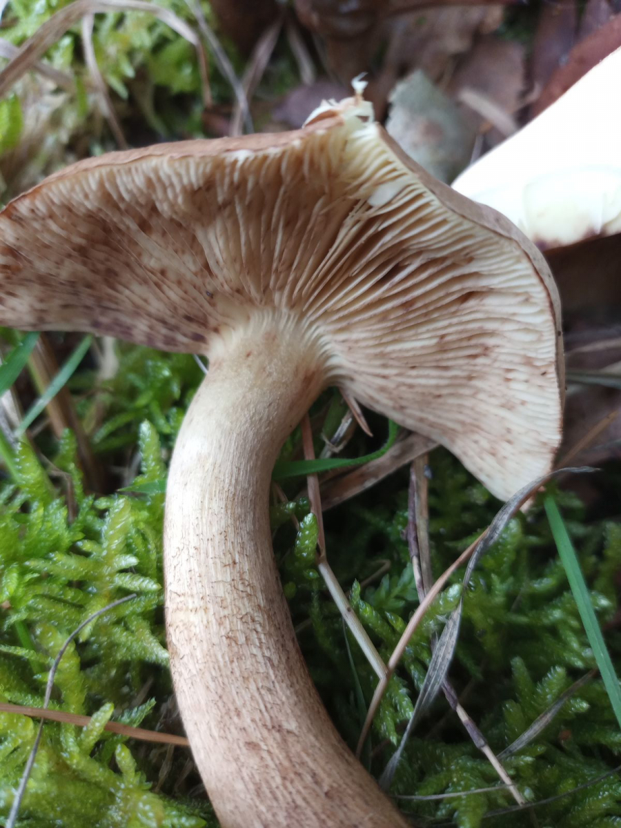 Tricholoma fulvum riecht außerdem im Fleisch ranzig-mehlig, T. ustale tut dies nicht.