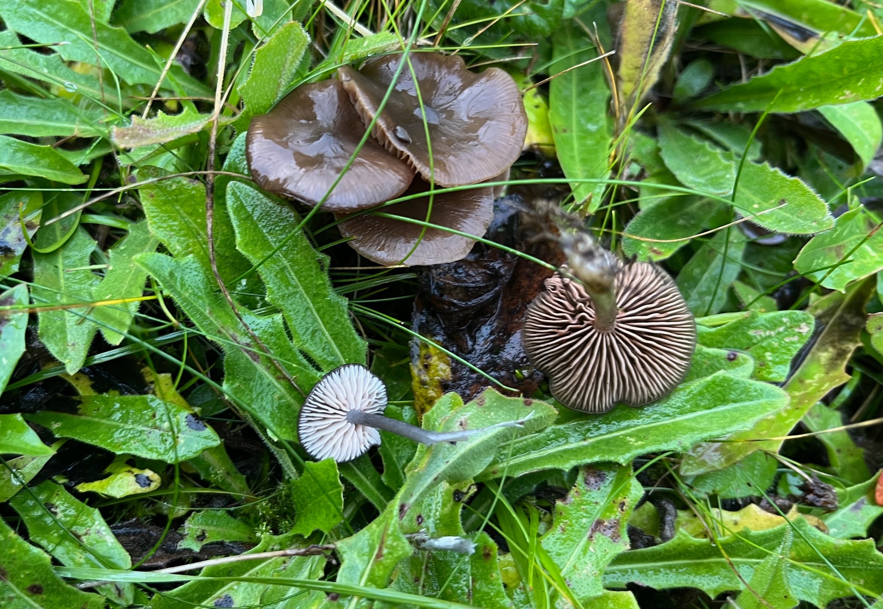 15. Links unterhalb von Entoloma prophyrogriseum eine weitere Entoloma, die man fast verwechseln könnte, hätte sie nicht Radialstreifen und diesen gewellten Rand.