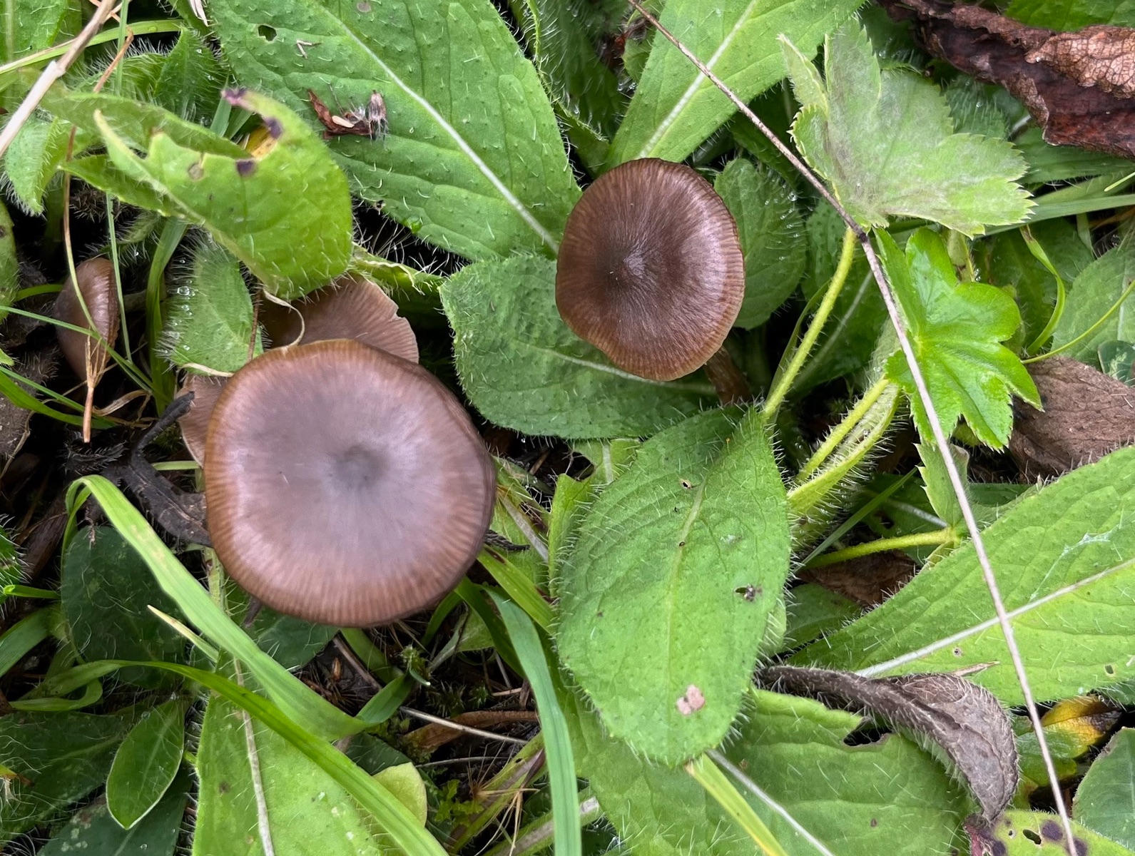 15. Links unterhalb von Entoloma prophyrogriseum eine weitere Entoloma, die man fast verwechseln könnte, hätte sie nicht Radialstreifen und diesen gewellten Rand.