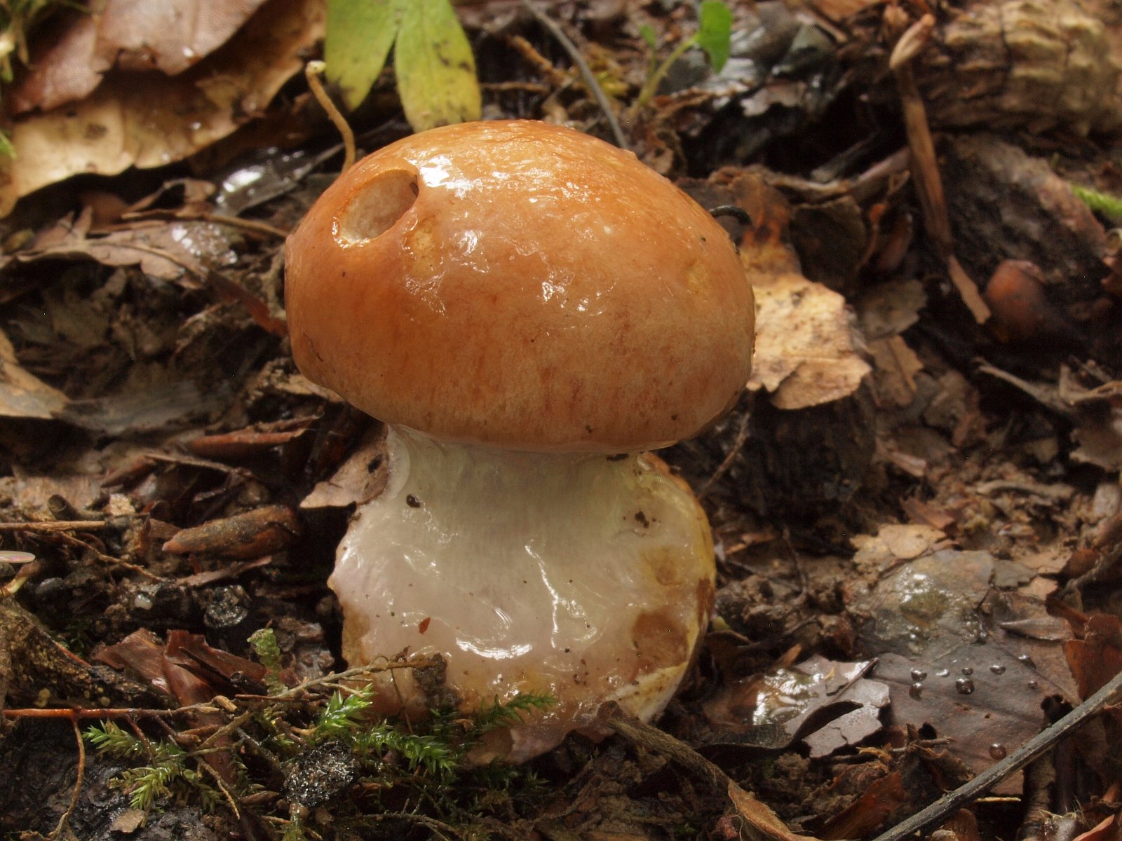 Leider nur ein verregnetes Einzelexemplar, aber die rundlichen Sporen passen