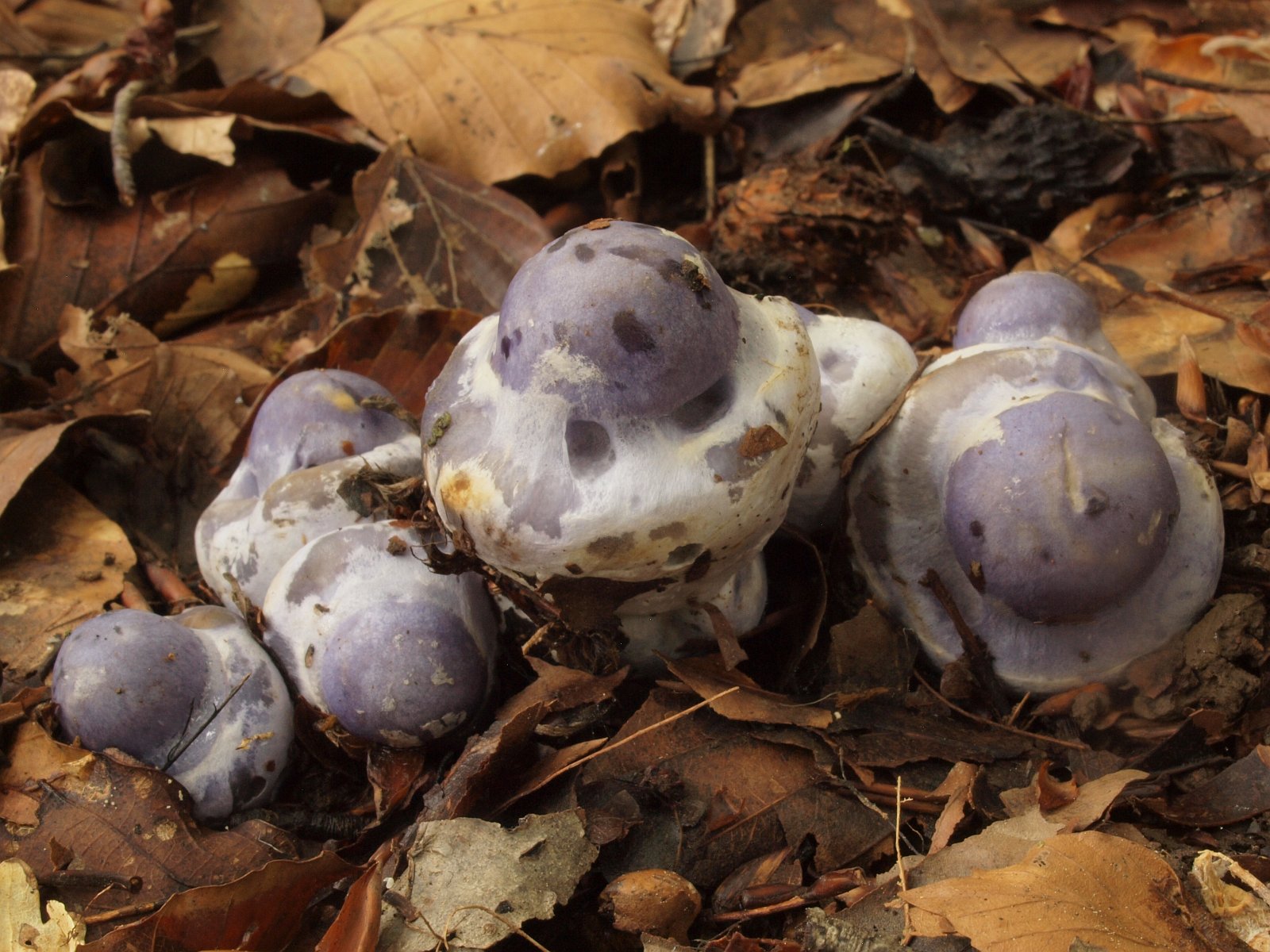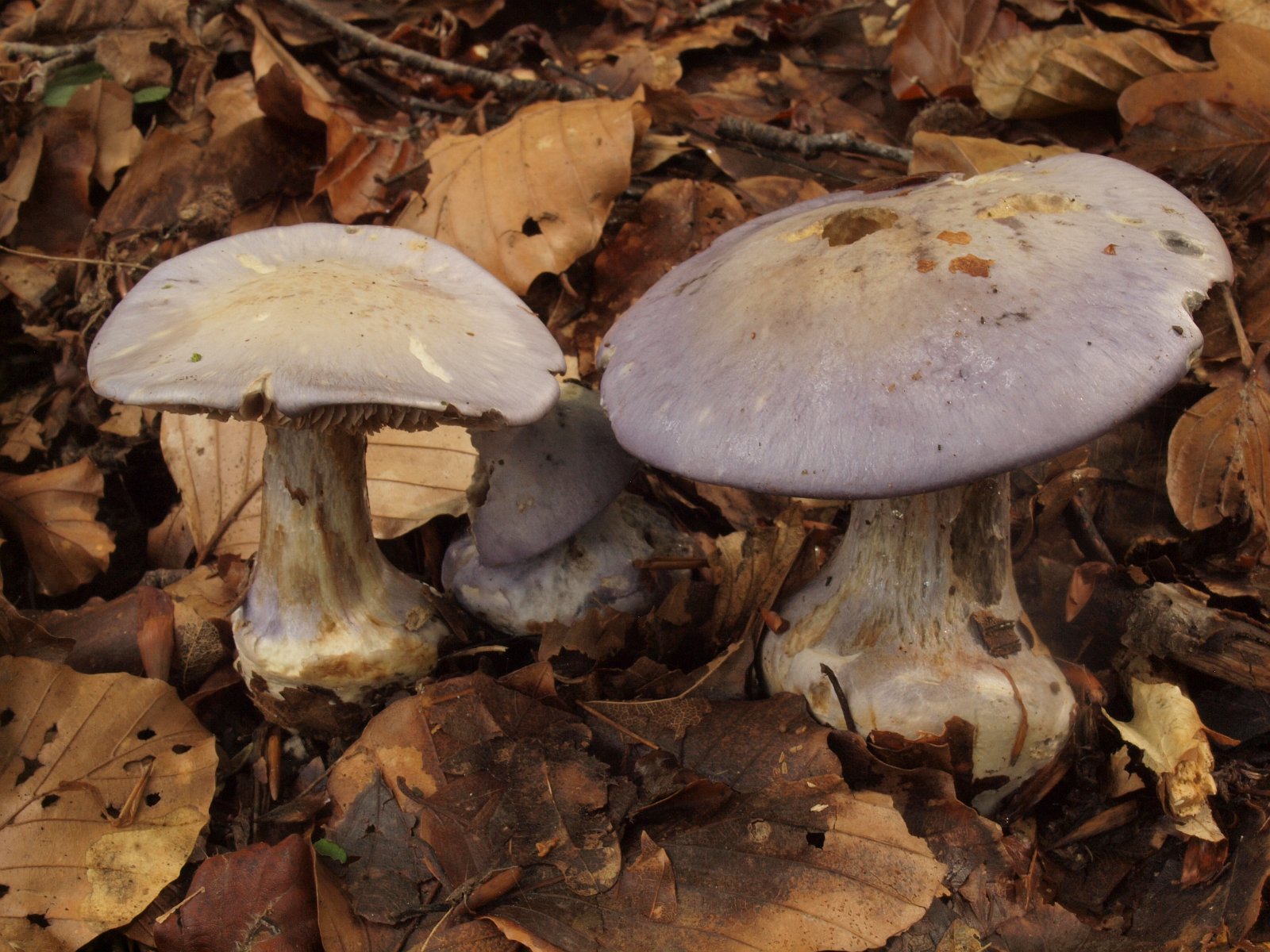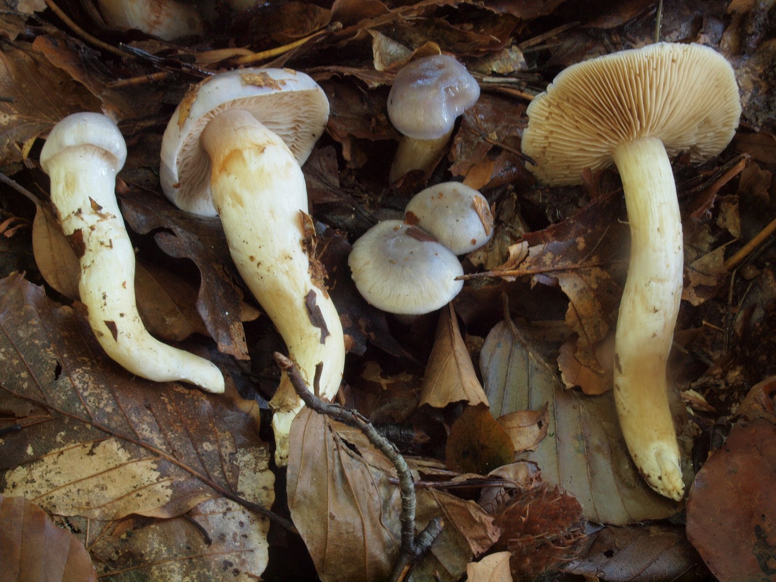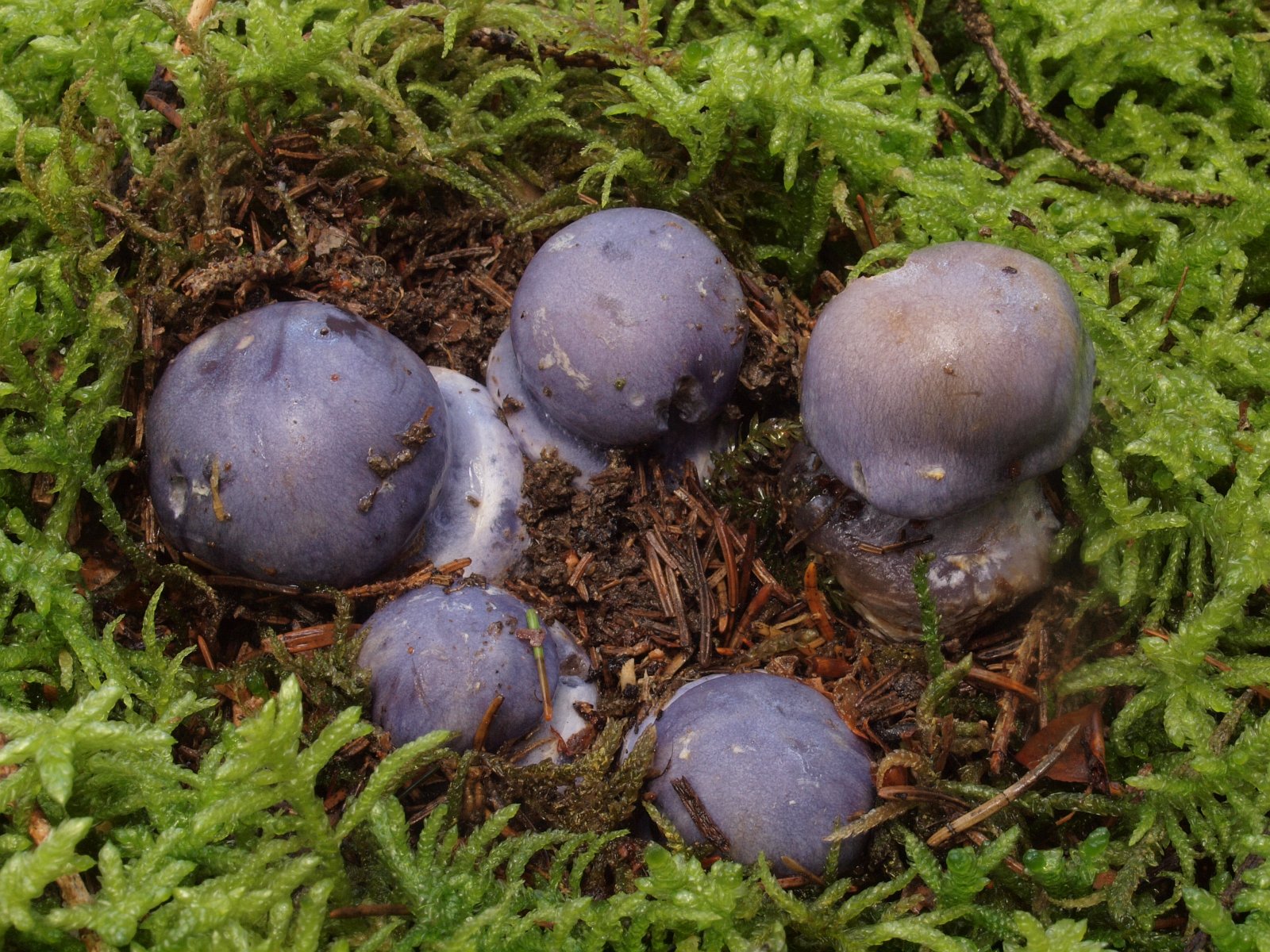 Eine weiter Art mit jung ähnlicher Farbe aus dem Laubwald. Bisher hatte ich nur Exemplare gefunden, die in der Hutmitte deutliche ockerlich ausgeblasst waren und Blautöne nur am Hutrand aufwiesen. Dieses mal gab es wahre Prachtstücke von