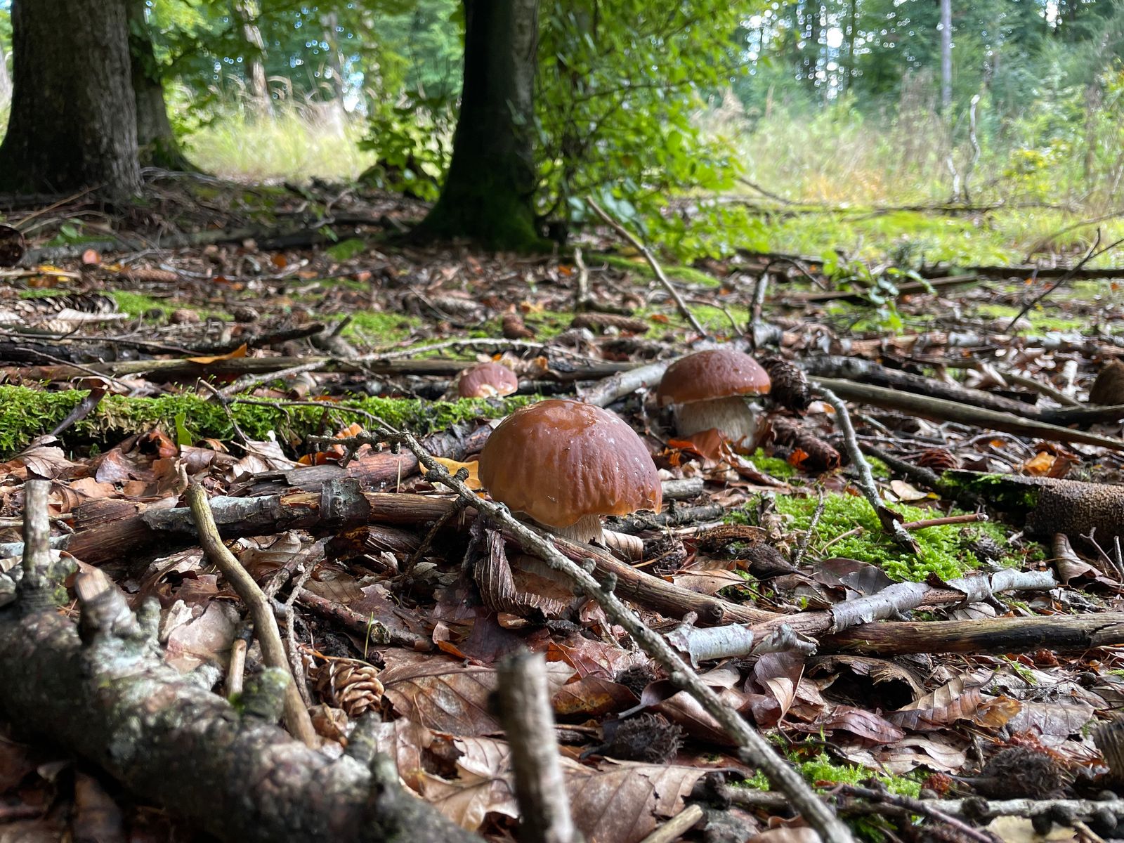 Hier und da gibt es in den Habitaten auch Fichtensteinpilze. Zusammen mit einer guten Maronen-Stelle hat sich so der Korb nochmal ansehnlich gefüllt.
