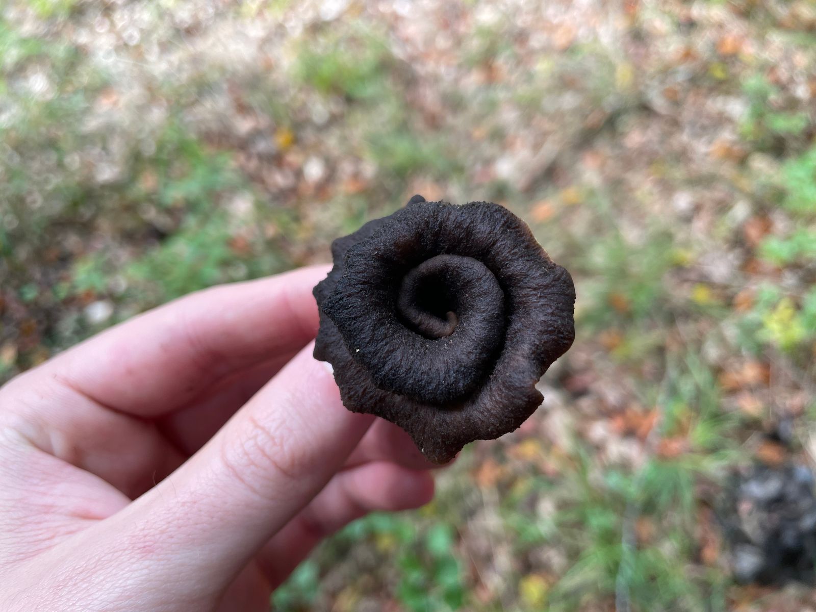 Ein netter Fund bei den Herbsttrompeten: Eine schwarze Rose. Sowas hatte ich auch noch nicht.