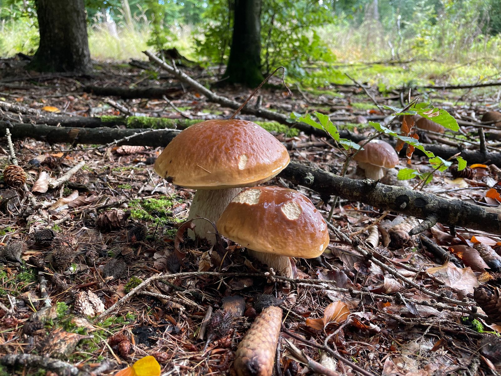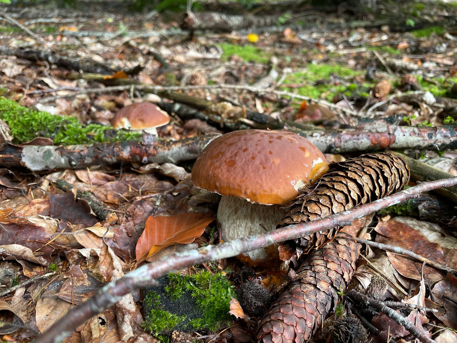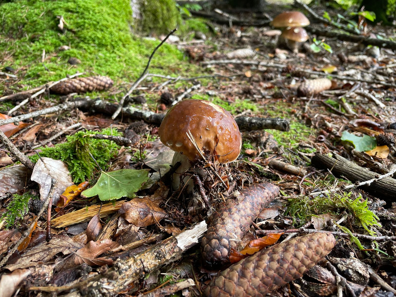 Hier und da gibt es in den Habitaten auch Fichtensteinpilze. Zusammen mit einer guten Maronen-Stelle hat sich so der Korb nochmal ansehnlich gefüllt.