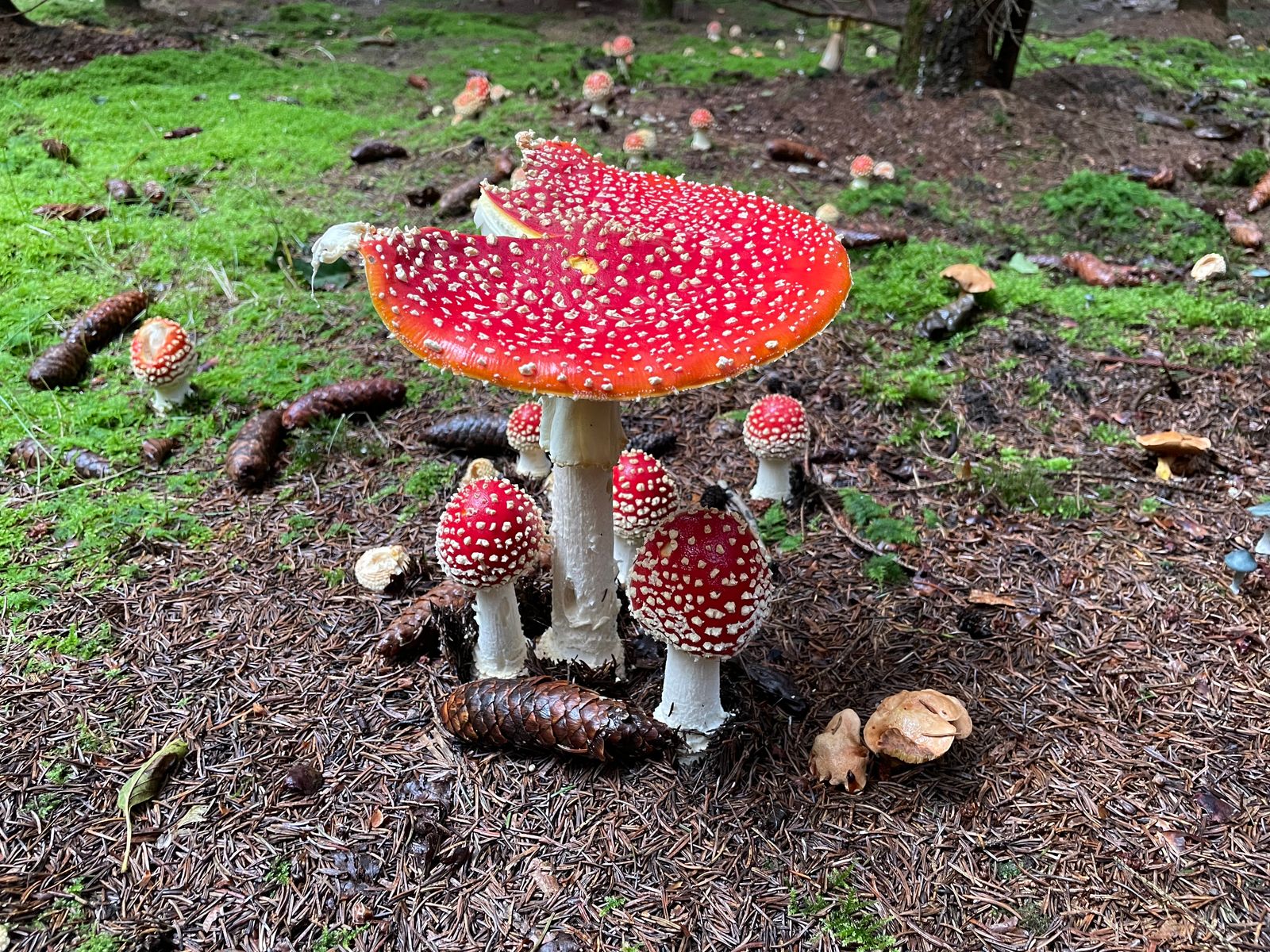 Fangen wir zur Abwechslung mal mit was Buntem an: Fliegenpilze. Es ist einfach nur völlig irre, was bei denen aktuell abgeht. Einfach nur toll anzuschauen. Man kommt sich vor wie im Märchenwald.
