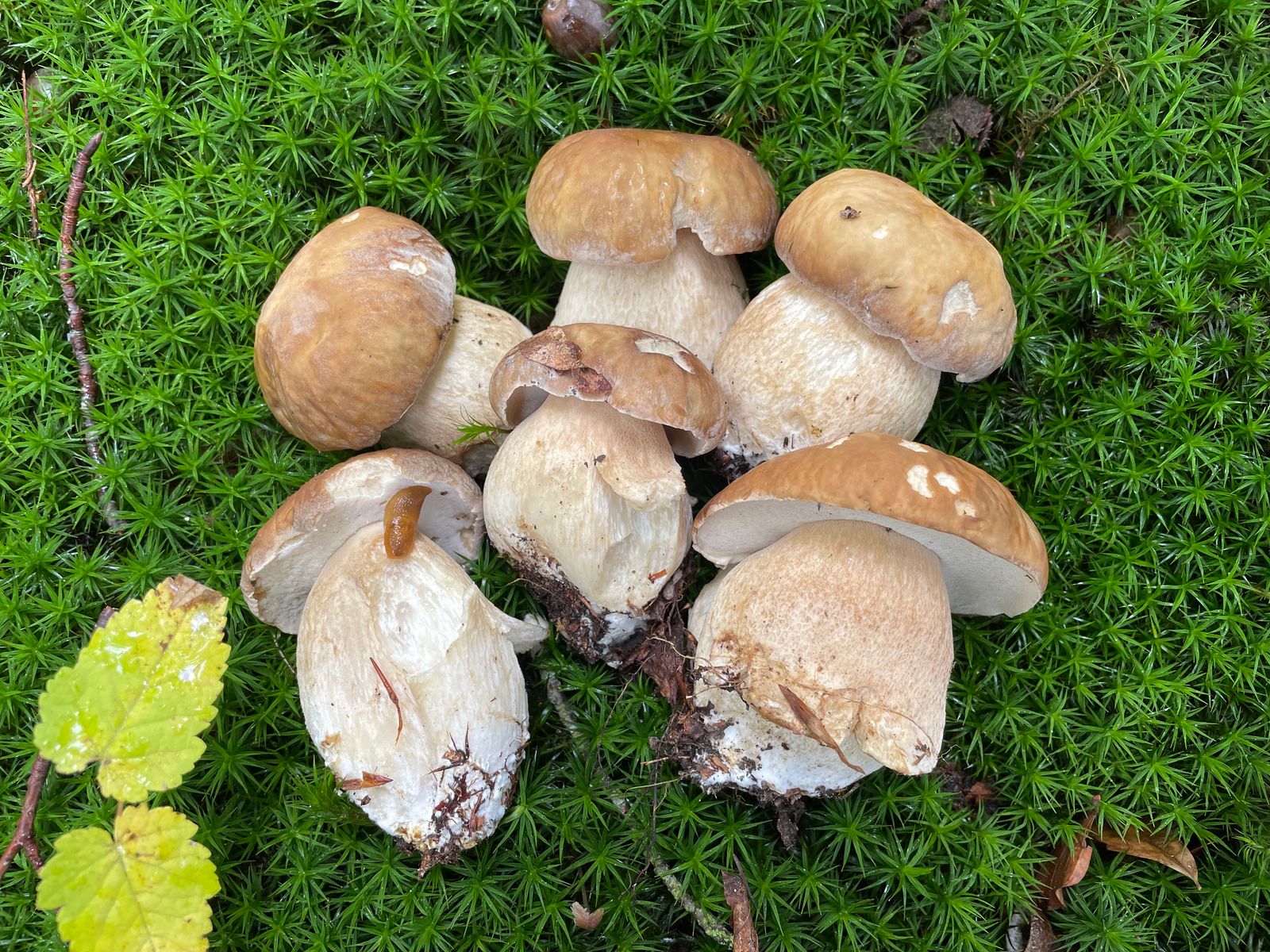 Hier und da gibt es in den Habitaten auch Fichtensteinpilze. Zusammen mit einer guten Maronen-Stelle hat sich so der Korb nochmal ansehnlich gefüllt.