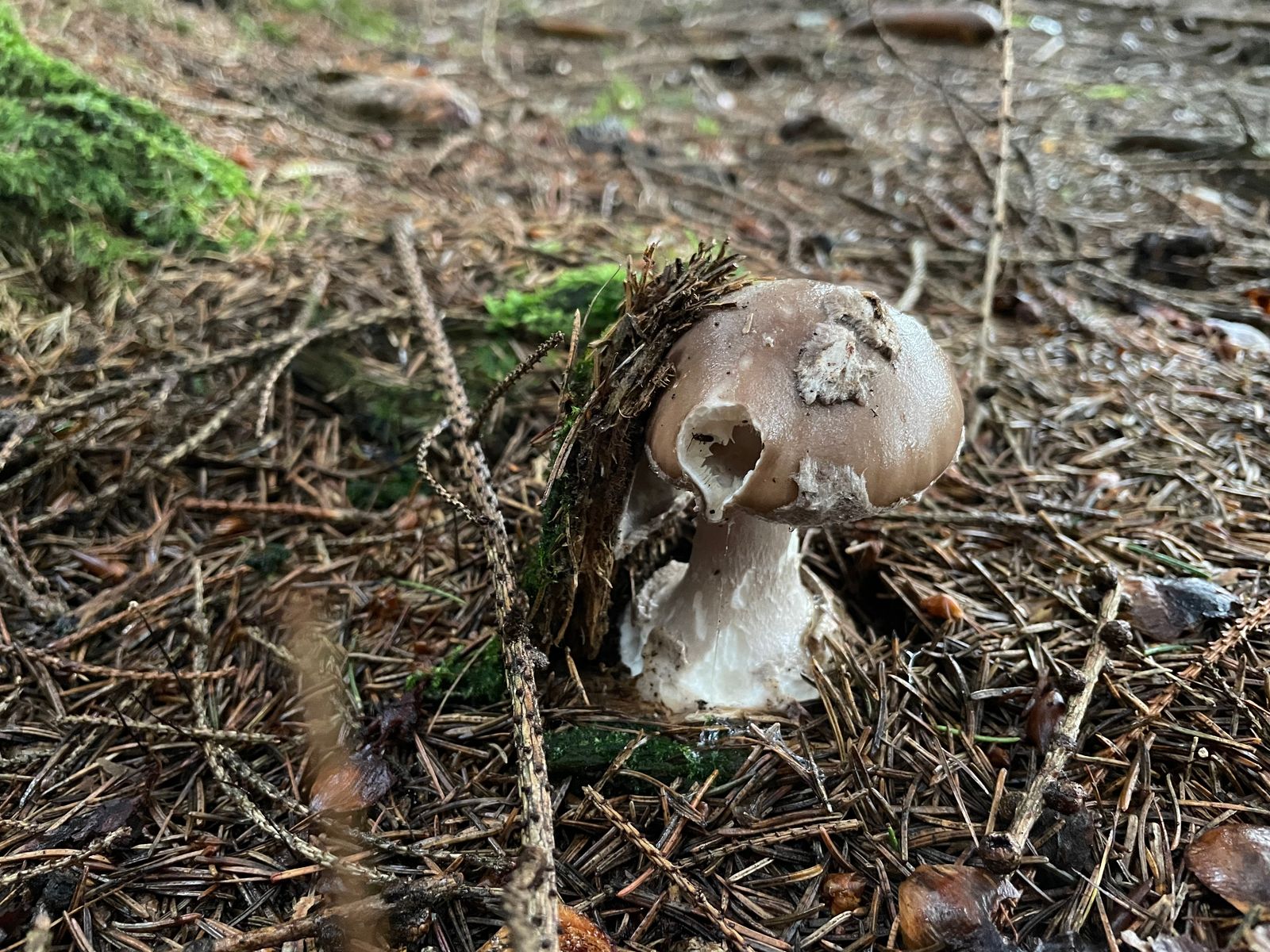 Der nächste erfreuliche Fund: Mein Zweitfund vom Porphyrbraunen Wulstling. Leider schon etwas vom Regen und den Schnecken in Mitleidenschaft gezogen.