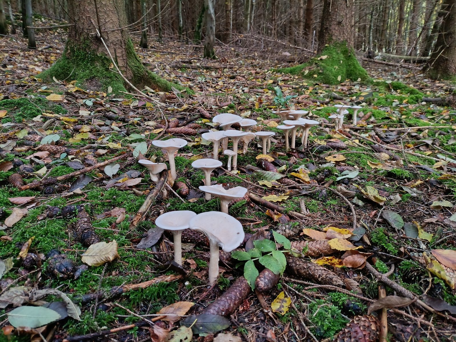 Ein neues Habitat der Herbsttrompete konnte ich finden. Auch dort phänomenales Massenwachstum mit richtig großen Fruchtkörpern. Da hab ich das Pilznetz nochmal ordentlich gefüllt. Die Art schieb auch weiterhin junge Fruchtkörper nach.