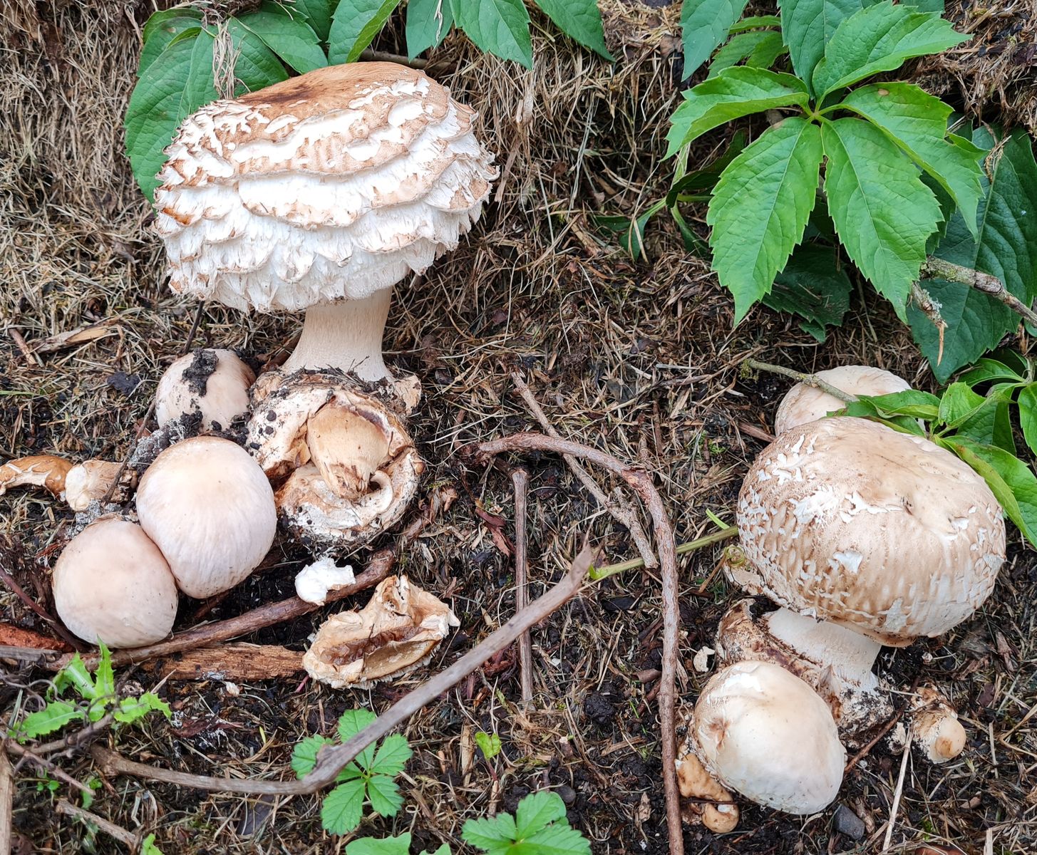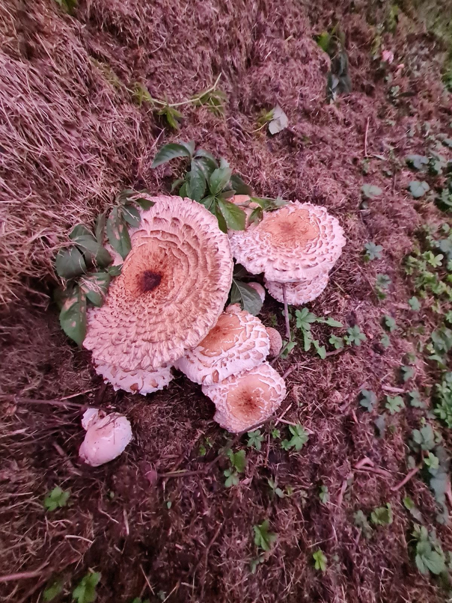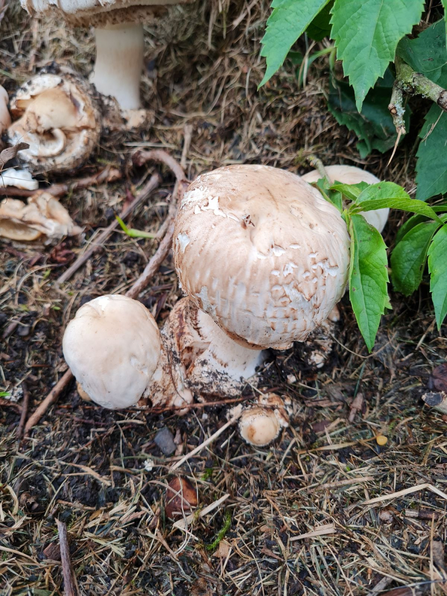Ein neuerlicher Pilzfund im Garten. Bei den kleinen Exemplaren dachte ich zuerst an Steinpilze, wegen der Hutfarbe und dem bauchigem dicken Stiel. Es gehören wohl aber alle Pilze auf dem Bild zur gleichen Art.