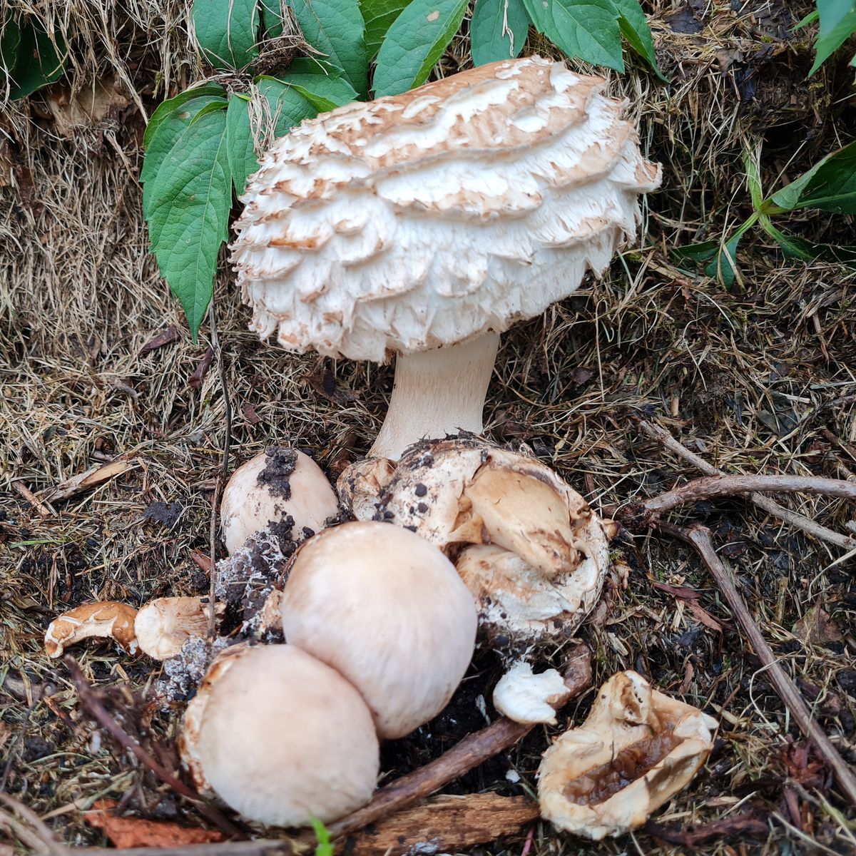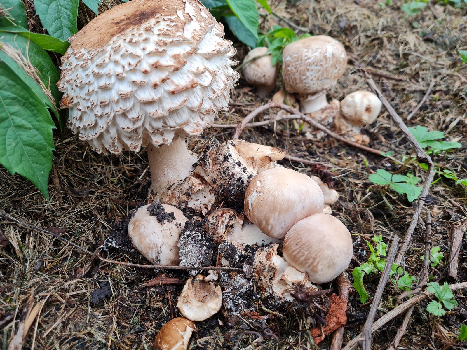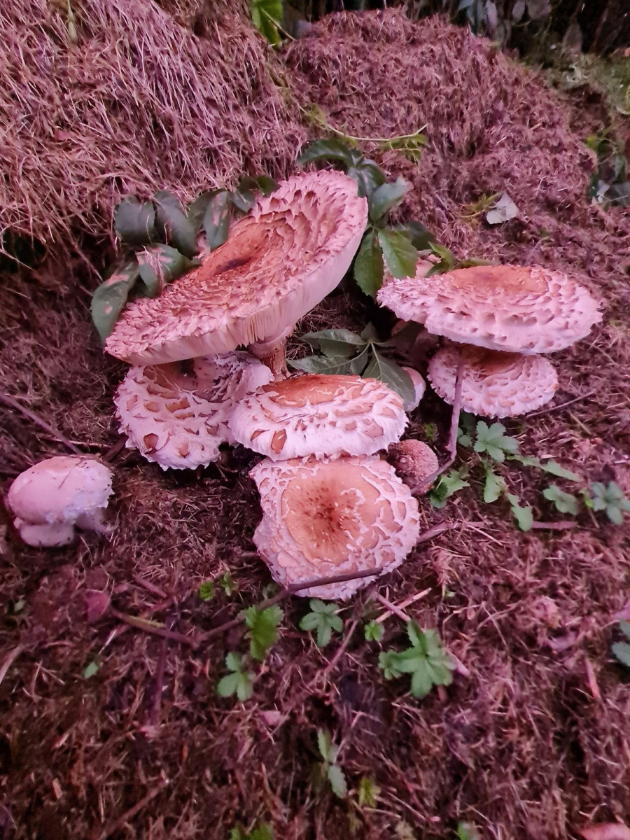 Ein neuerlicher Pilzfund im Garten. Bei den kleinen Exemplaren dachte ich zuerst an Steinpilze, wegen der Hutfarbe und dem bauchigem dicken Stiel. Es gehören wohl aber alle Pilze auf dem Bild zur gleichen Art.