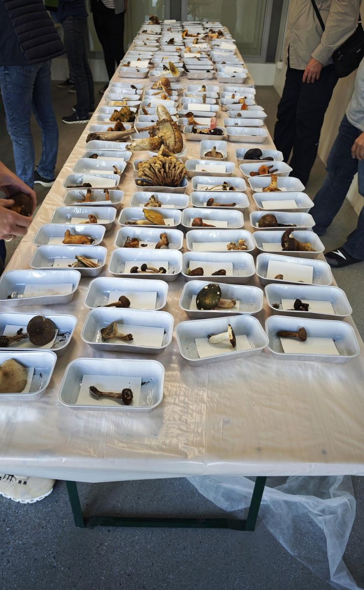 Ganz genau weiss ich das gar nicht. Aber da die Teilnehmer aus der ganzen Deutschschweiz anreisen und aufgefordert werden Pilze mitzubringen sollte am Anfang eigentlich schon etwas zusammen. Während dem Kurs gehen dann auch immer verschiedene Gruppen Pilze sammeln und man fährt teilweise auch mal bis zu einer Stunde, wenn es sonst in der Umgebung nicht so gut mit Pilzen aussieht. Falls es wirklich wenige Pilze hat, so habe ich es zumindest gehört, können bei der Artenerkennung mit den 70 Pilzen, Pilzarten auch zweimal aufliegen. Im schlimmsten Fall, kommen glaube ich zusätzlich noch Pilzmodelle zum Einsatz. Aber ganz sicher bin ich mir hier nicht. Vielleicht weiss das sonst jemand noch genauer.