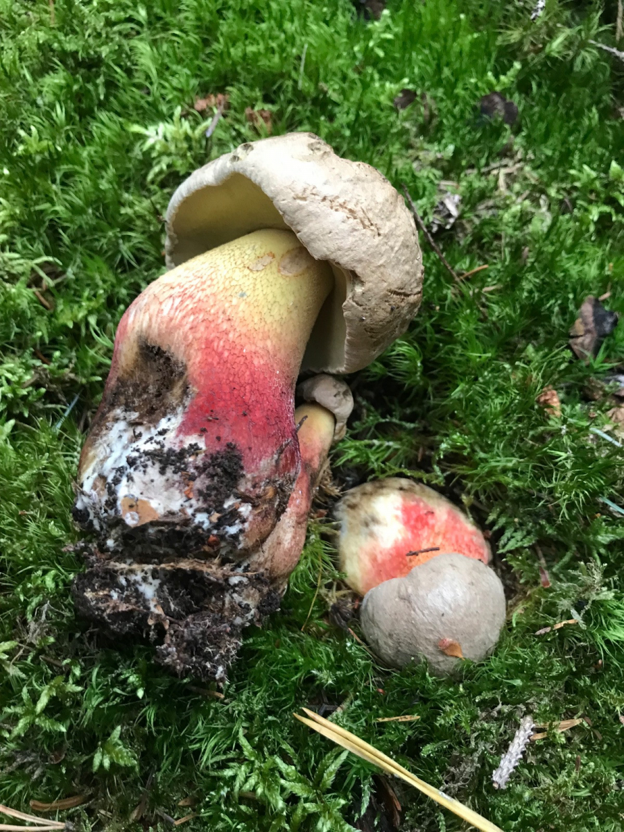 Schnell nach Hause, Korb ausleeren und nochmal mit einem Freund in den Wald. Zu einer Stelle, an der es angeblich Kiefernsteinpilze geben soll. Die fanden wir leider nicht, dafür anderes: