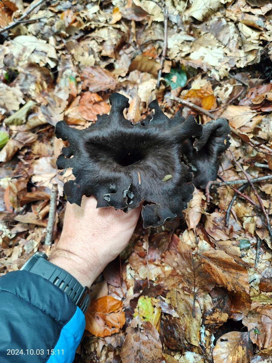 Hier eine XXL Herbsttrompete (Craterellus cornucopioides)