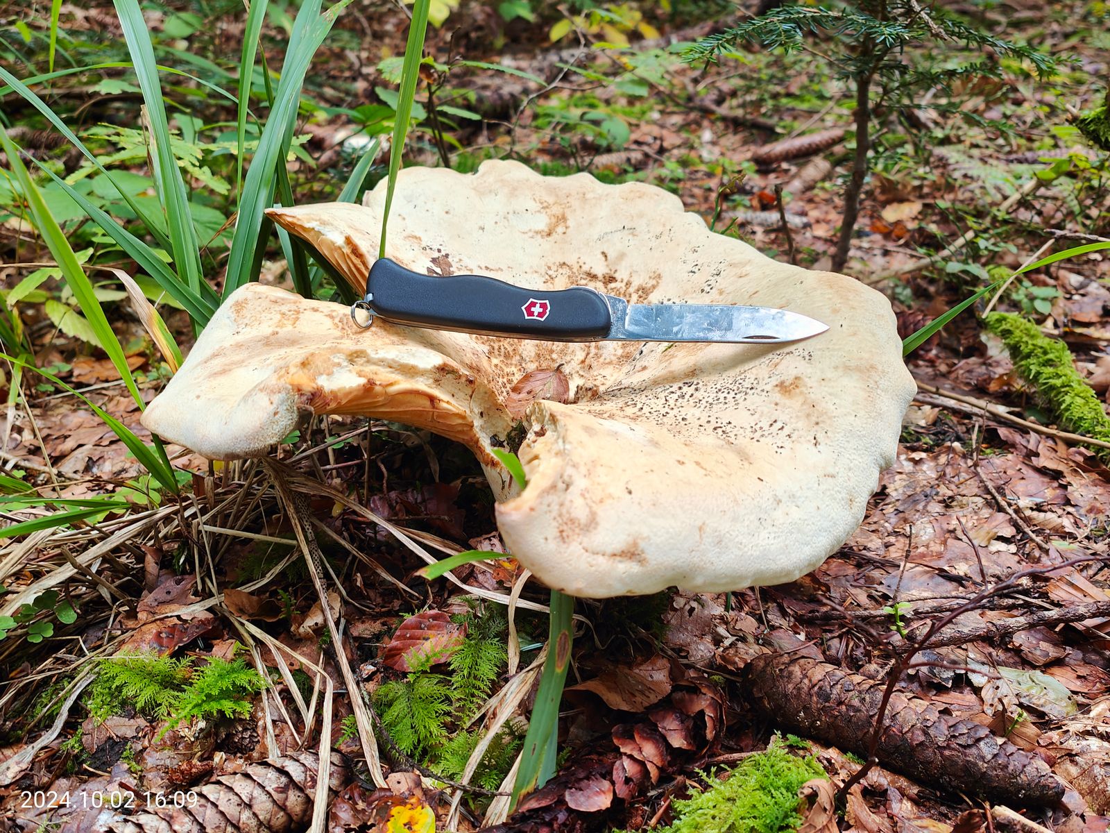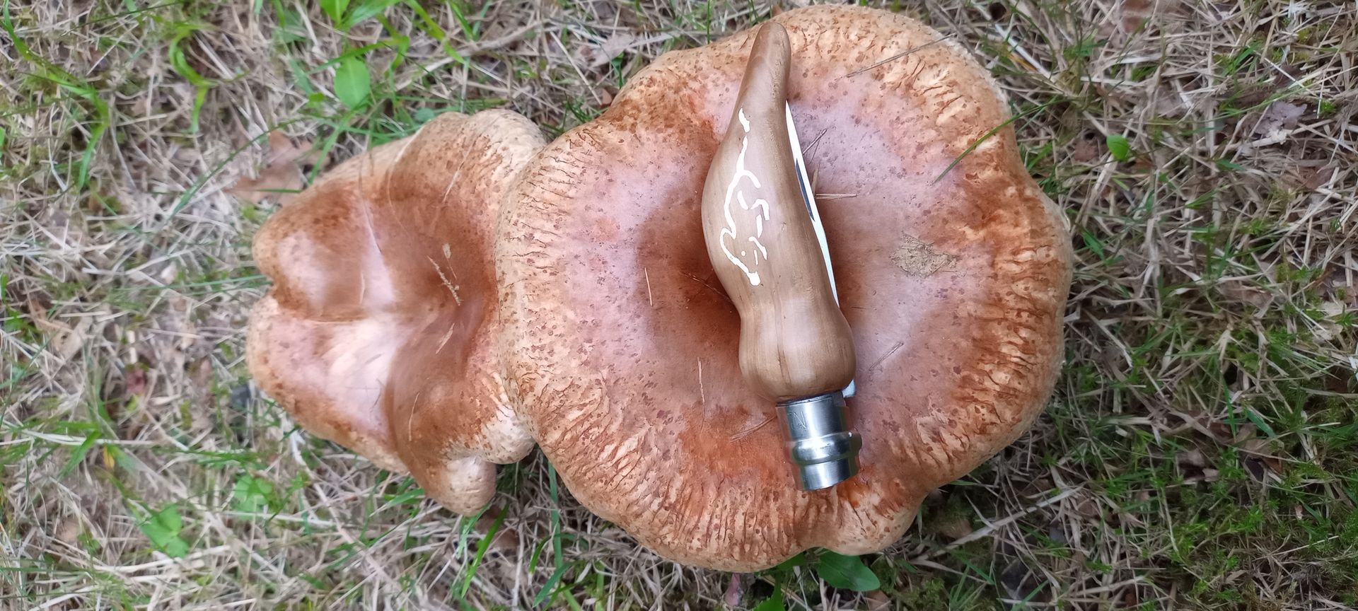 • Einen schuppigen Stielporling hätte ich auch noch. Das Messer hat 13,5cm zugeklappt.