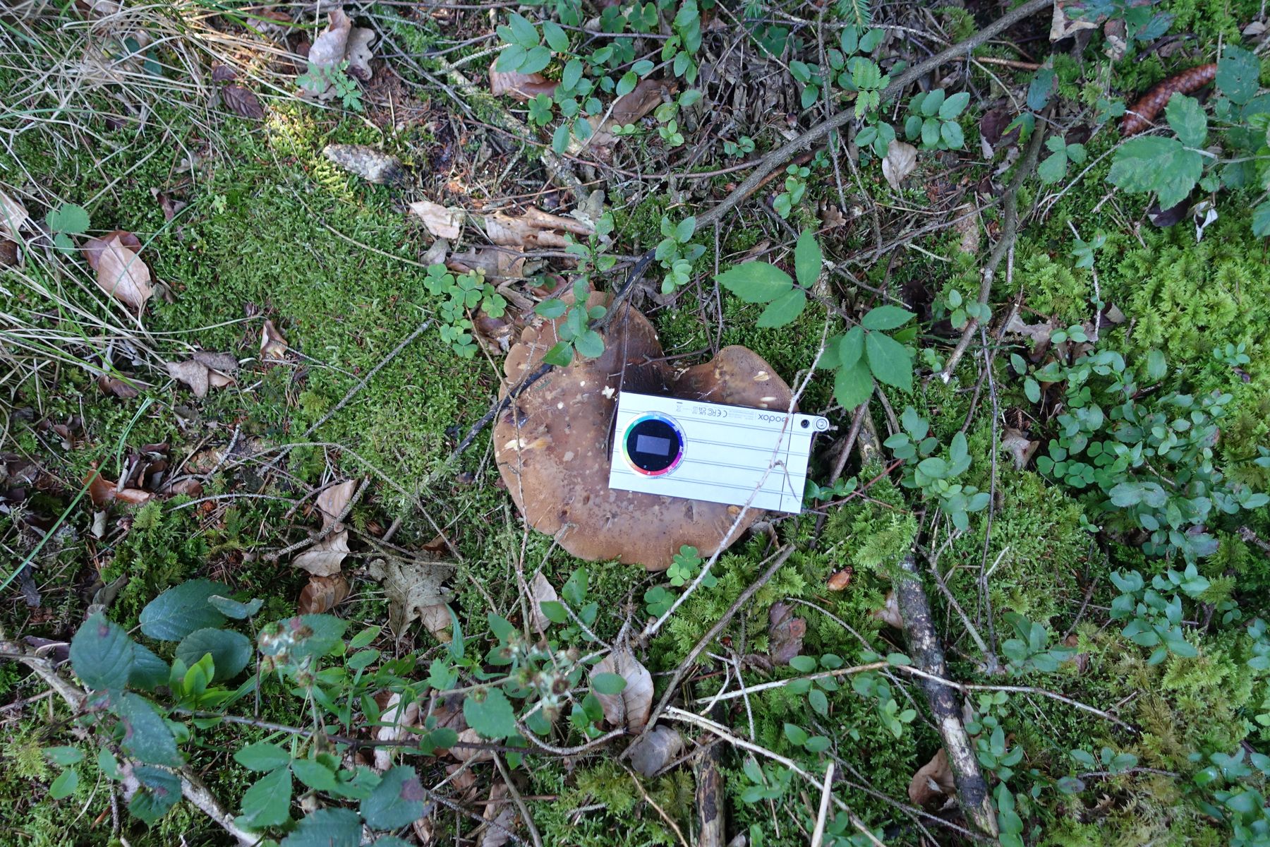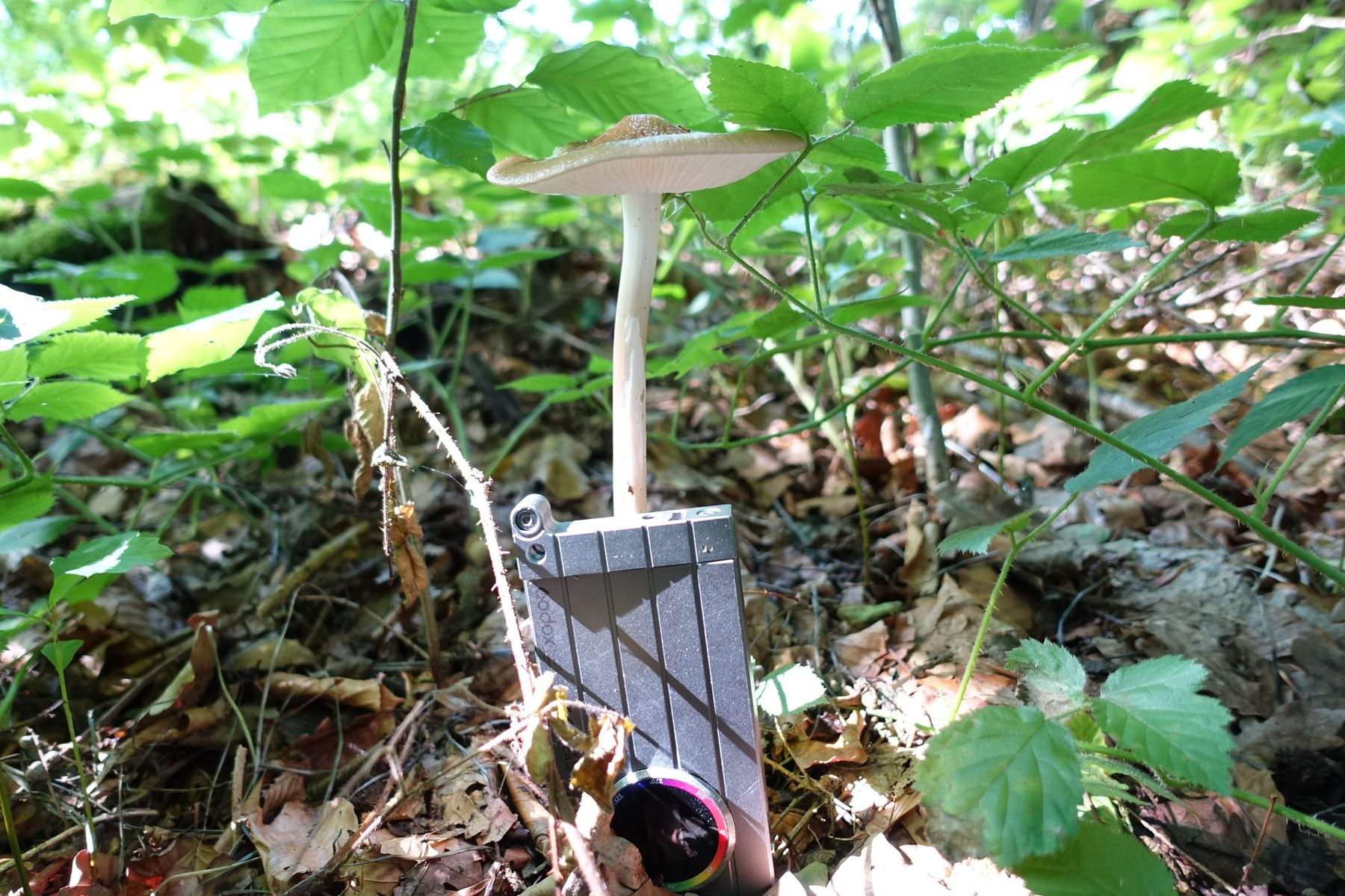 Das Männchen hat mir mein Sohn mal gebaut (Schwammerlsucher-Papa), in der einen Hand die Kamera in der anderen ein "Pilzmesser". Ist nicht zwingend für den Größenvergleich, aber auch für Fotos ganz witzig. Mittlerweile sind's drei Figuren in der Kameratasche