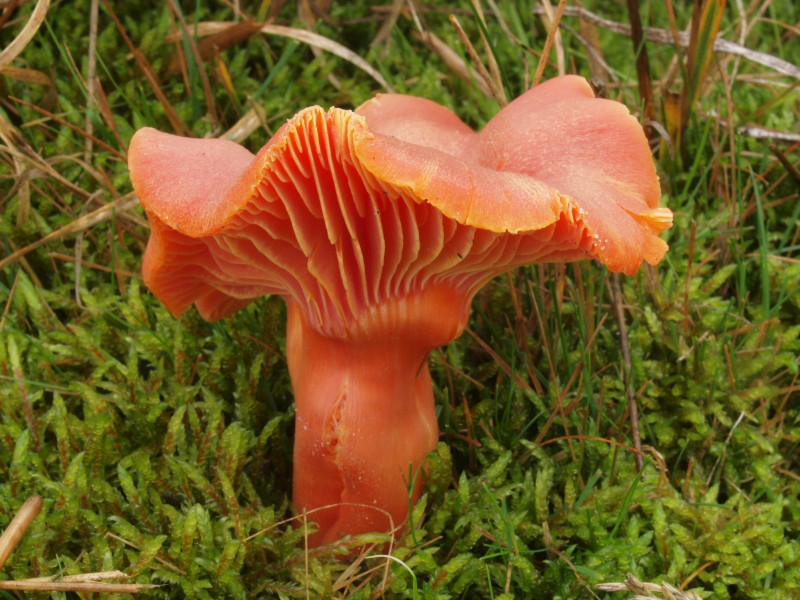 Vom letzten Wochenende ein wahres Monster des Mennigroten Saftling (Hygrocybe miniata)